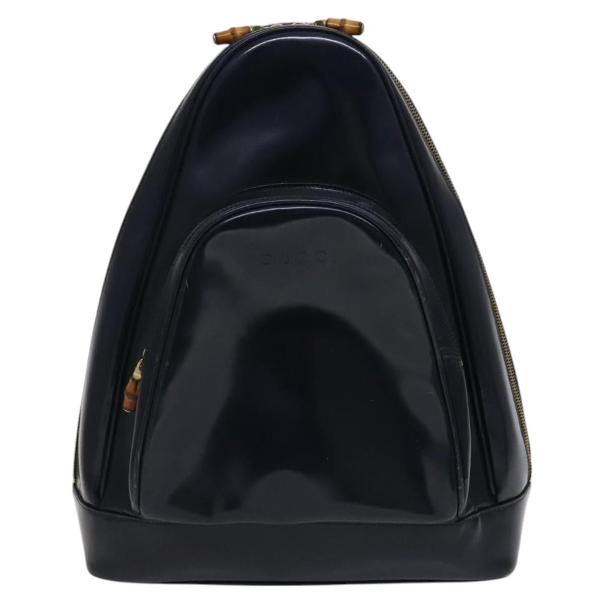 GUCCI Bamboo Shoulder Bag Patent leather Navy Gold 003 2113 0027 Auth th5637
