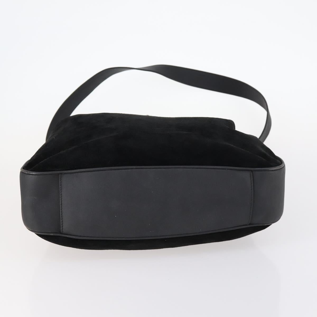 GUCCI Bamboo Shoulder Bag Suede 2way Black Gold 001 1577 Auth 144229