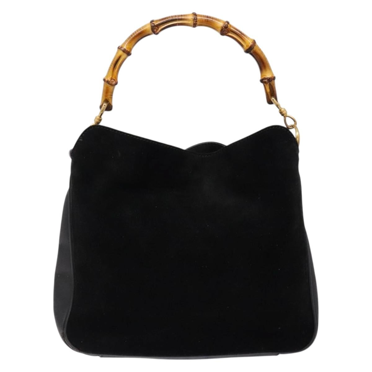 GUCCI Bamboo Shoulder Bag Suede 2way Black Gold 001 3754 1638 Auth 139273