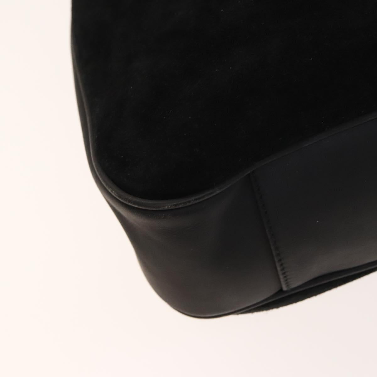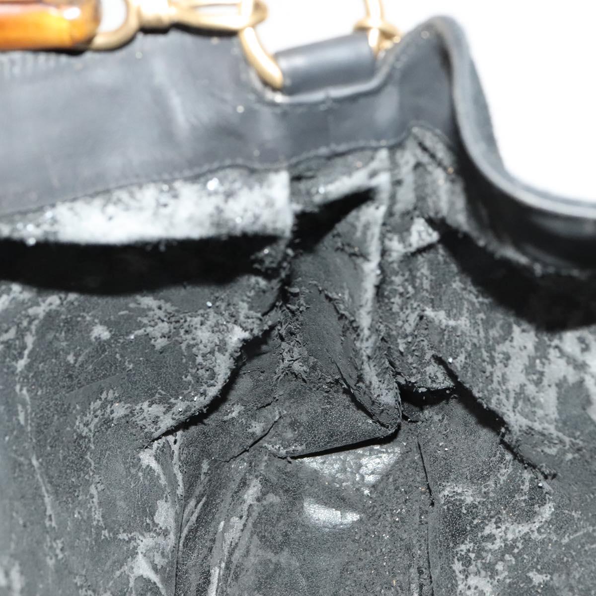 GUCCI Bamboo Shoulder Bag Suede 2way Black Gold 01 1705 1577 Auth 138502