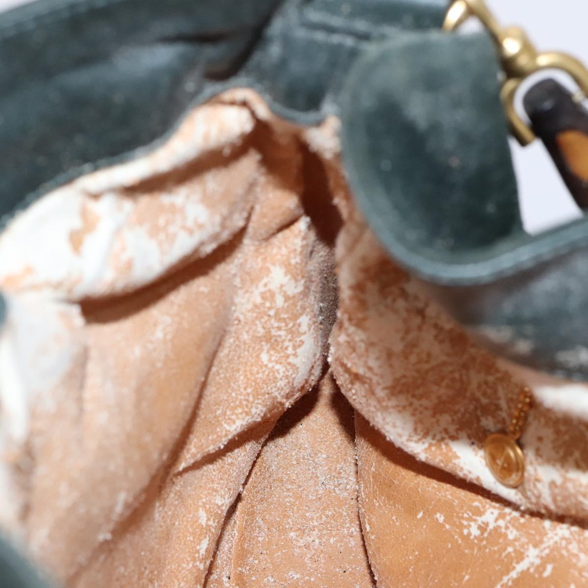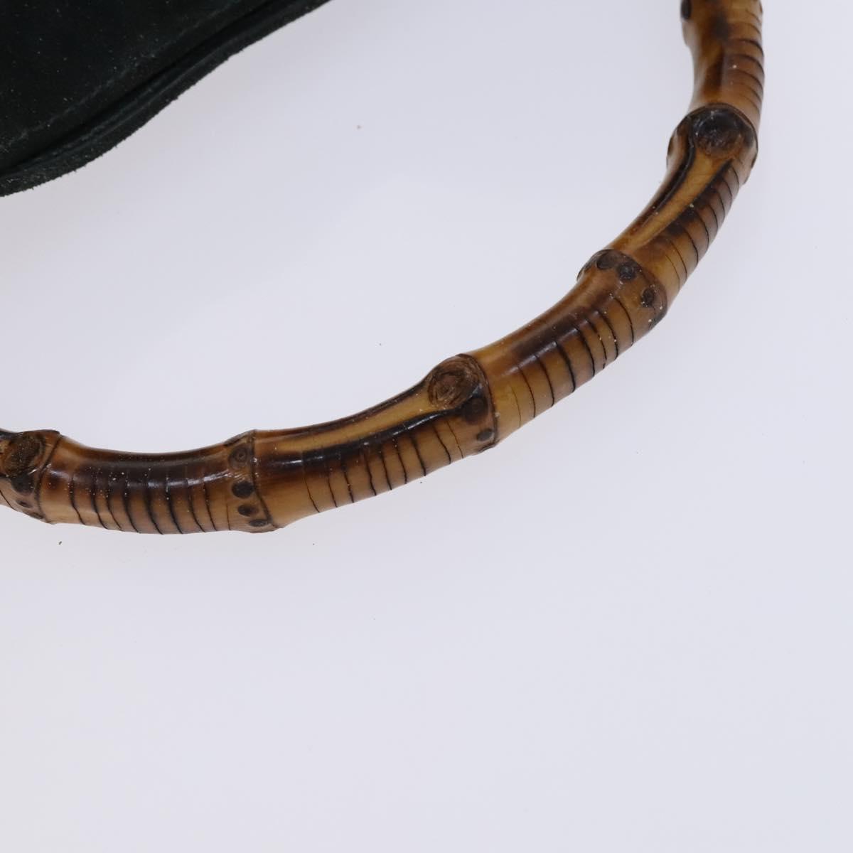 GUCCI Bamboo Shoulder Bag Suede Leather 2way Green Gold Auth EC725