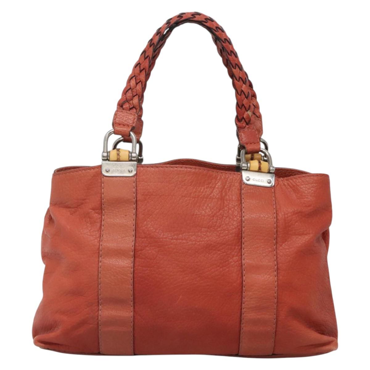 GUCCI Bamboo Tote Bag Leather Red Silver 232947 Auth 139547