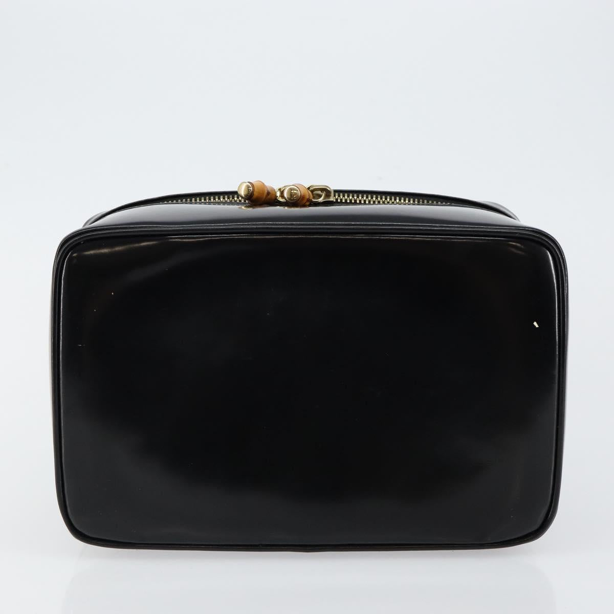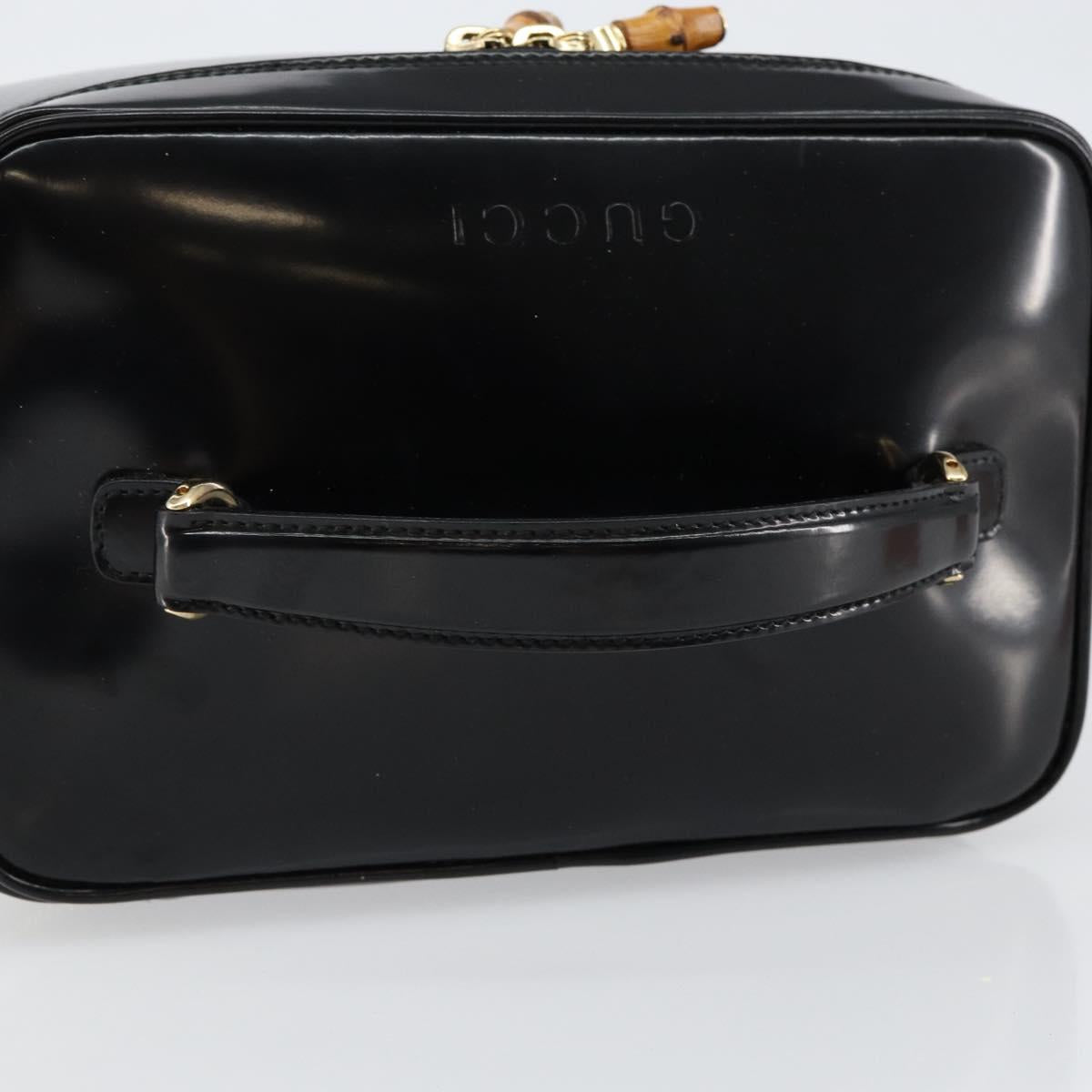 GUCCI Bamboo vanity Hand Bag Patent leather Black Auth 146152