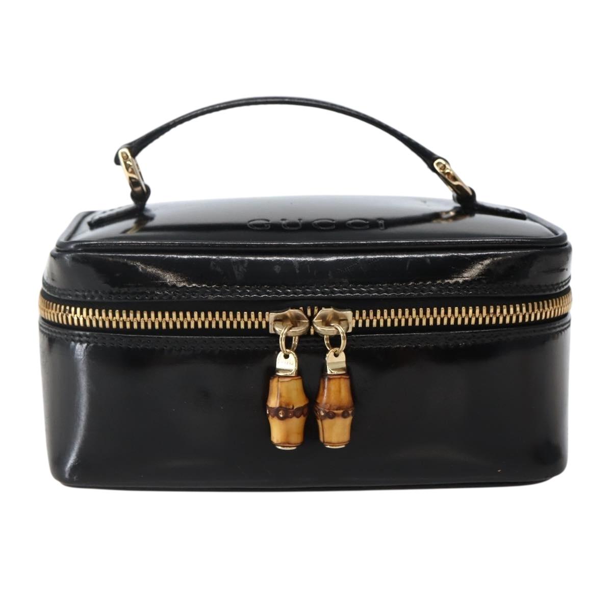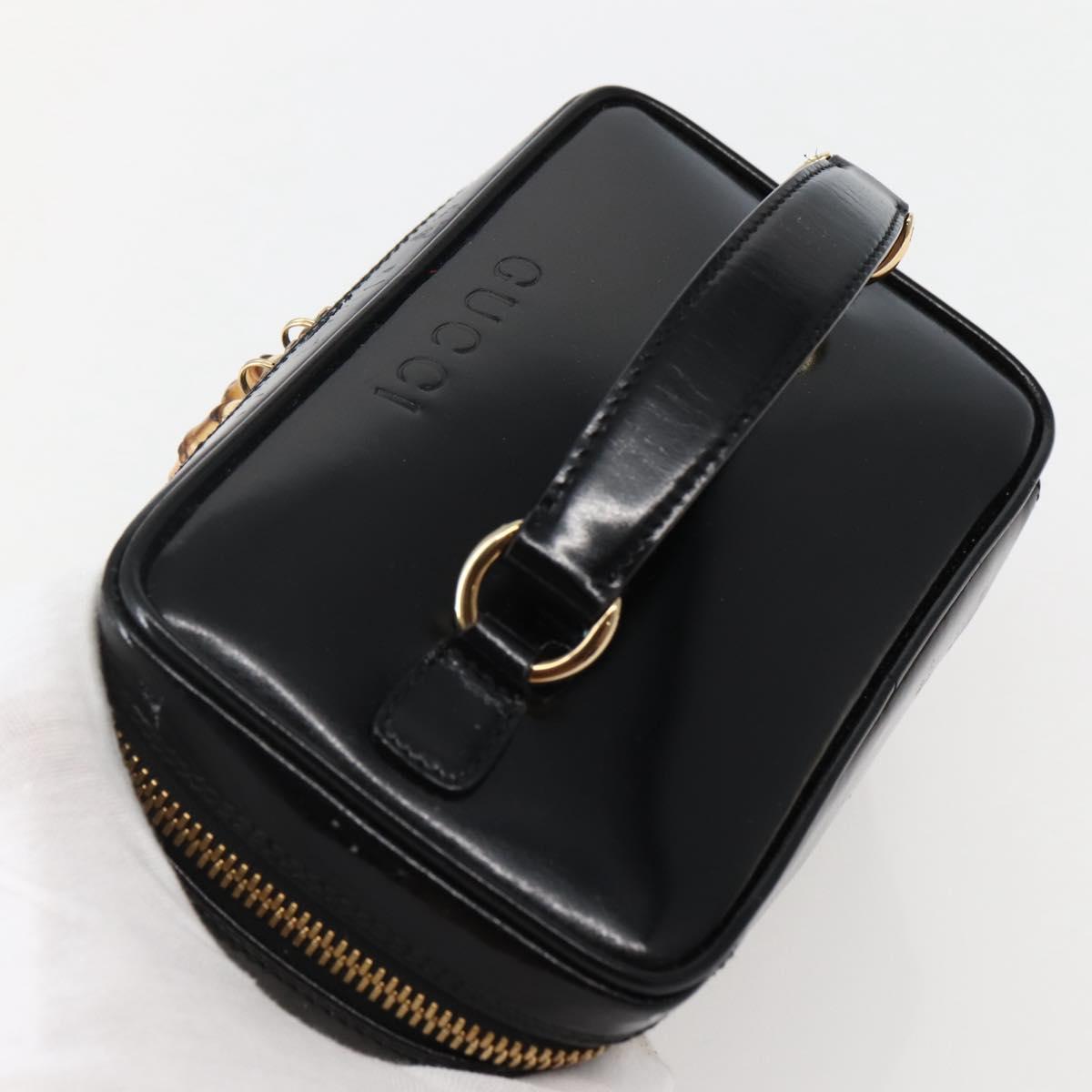 GUCCI Bamboo Vanity Pouch Enamel Black Gold 032 1705 0151 Auth BA6332