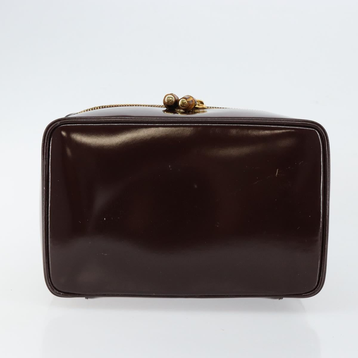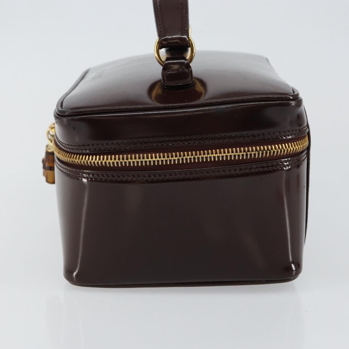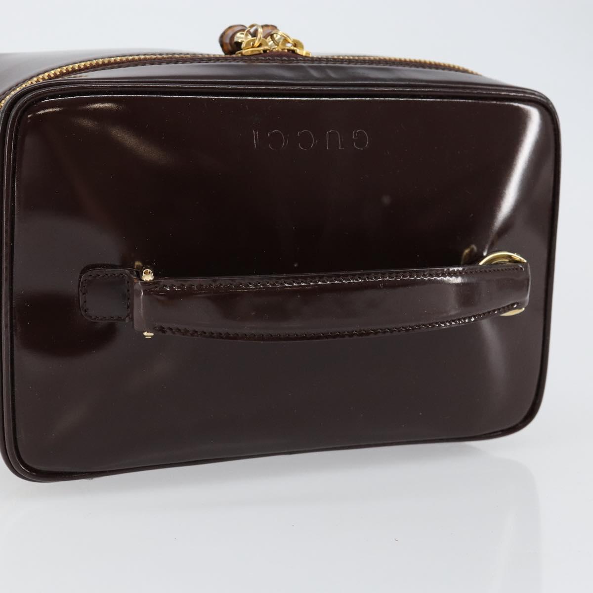GUCCI Bamboo Vanity Pouch Enamel Brown Gold 032 1956 0150 Auth am9196