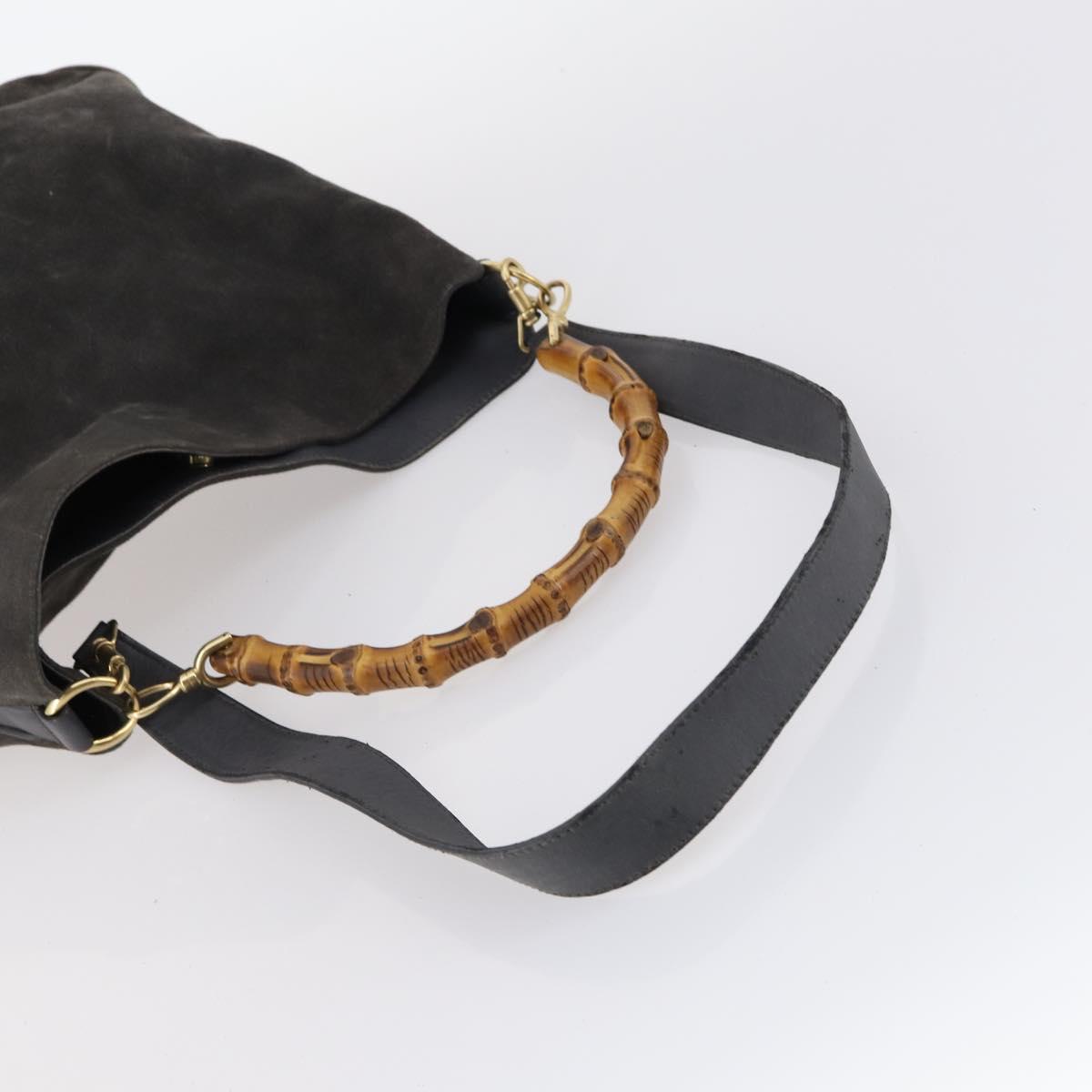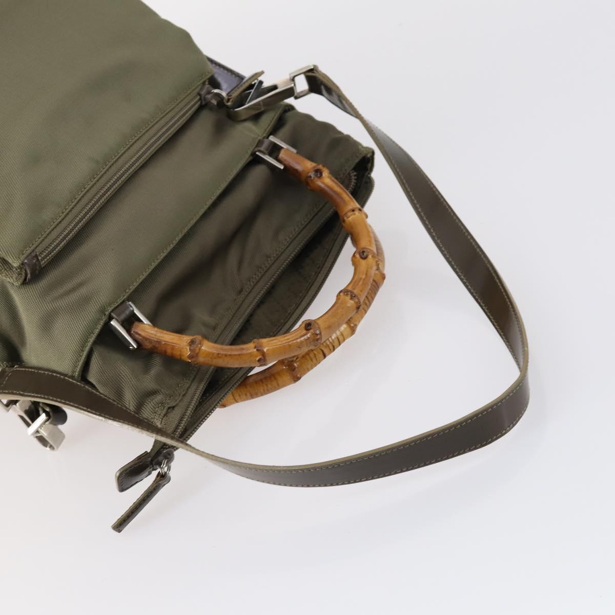 GUCCI Bamboo Web Sherry Line Bag Leather Canvas 6Set Beige Black Auth bs29373