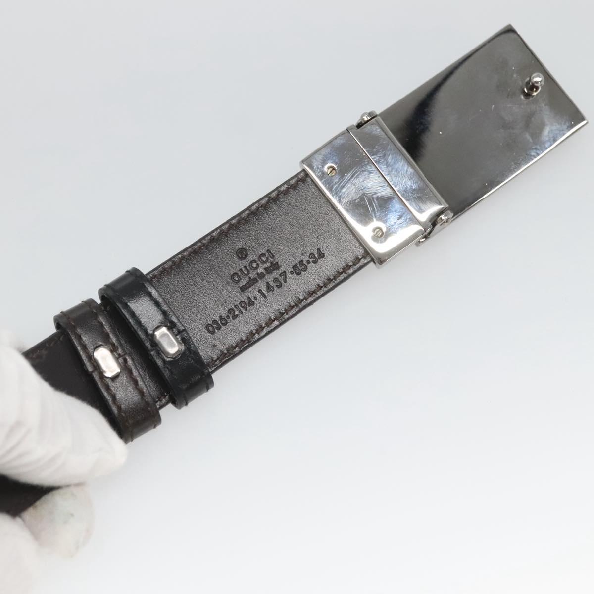 GUCCI Belt Leather 81.5-34.3"" Black Silver Auth bs25928