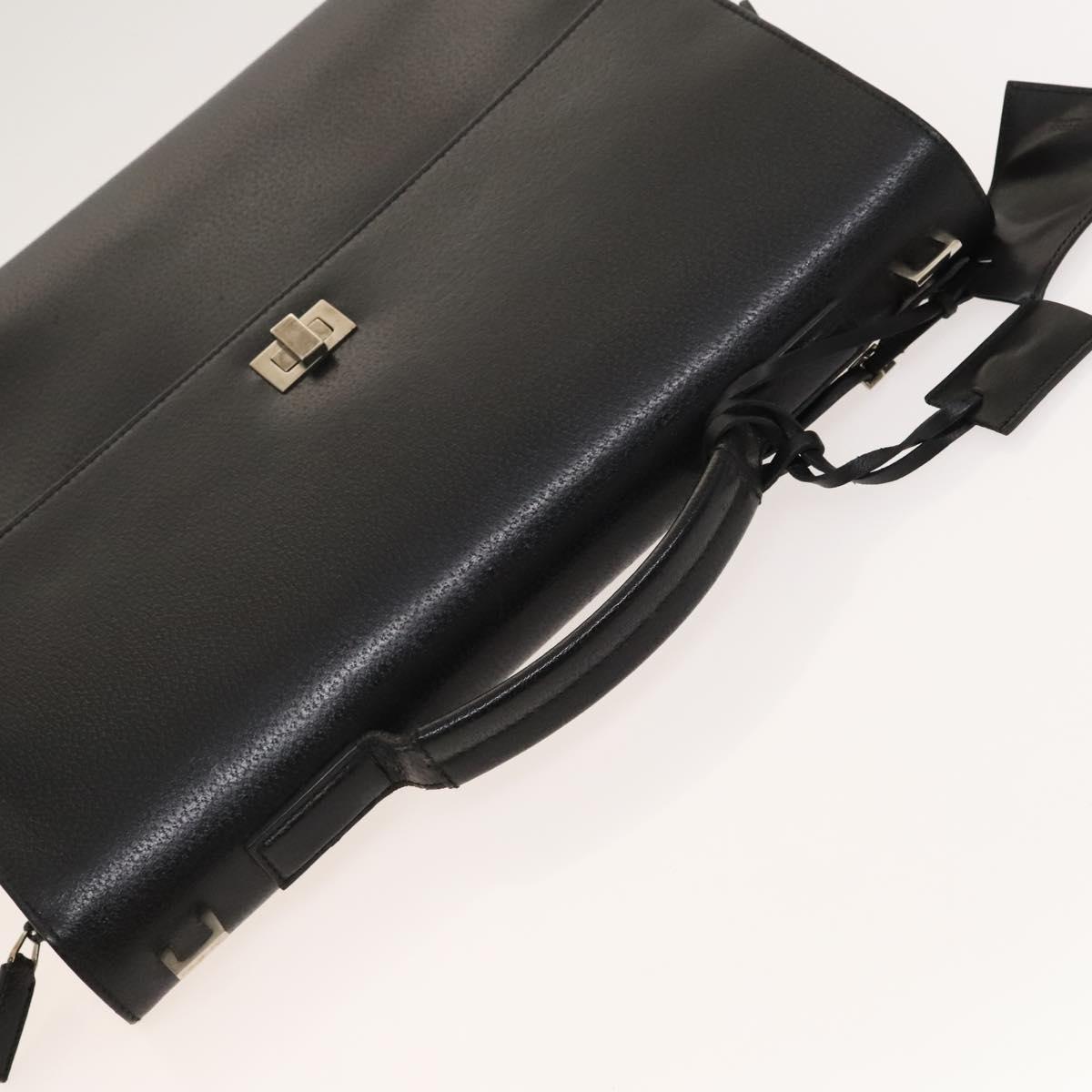 GUCCI Business Bag Leather 2way Black Silver Auth 118896