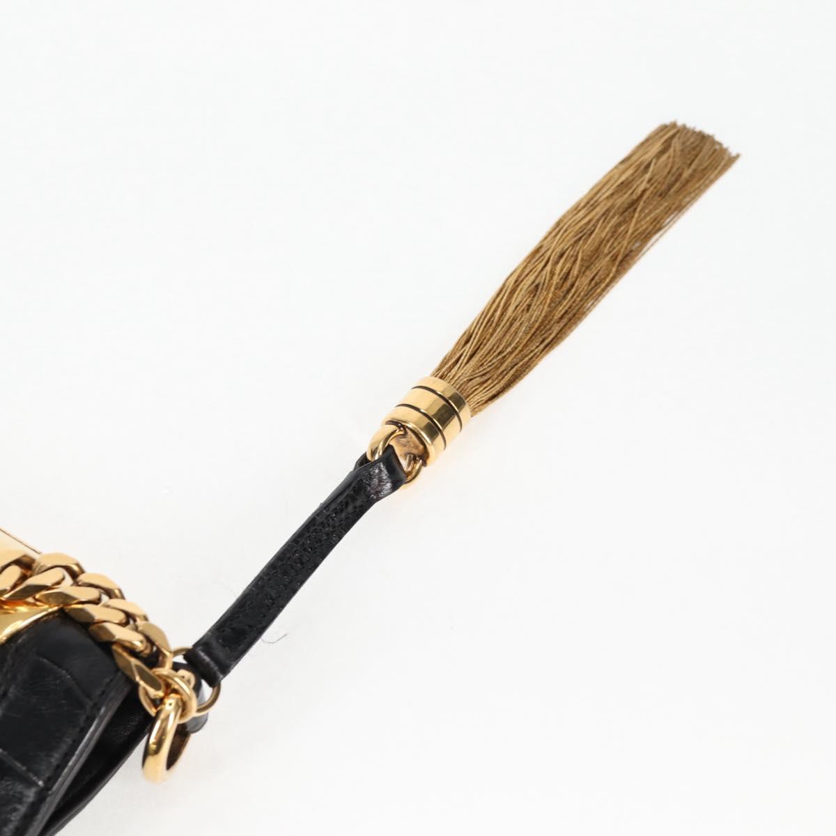 GUCCI Chain Shoulder Bag Leather Black Gold 290682 Auth 123498V