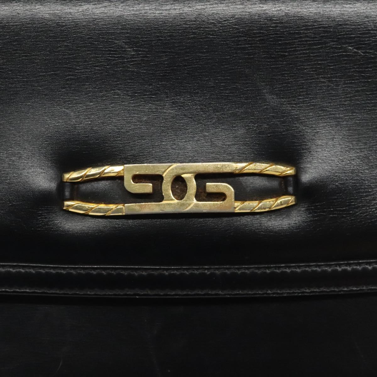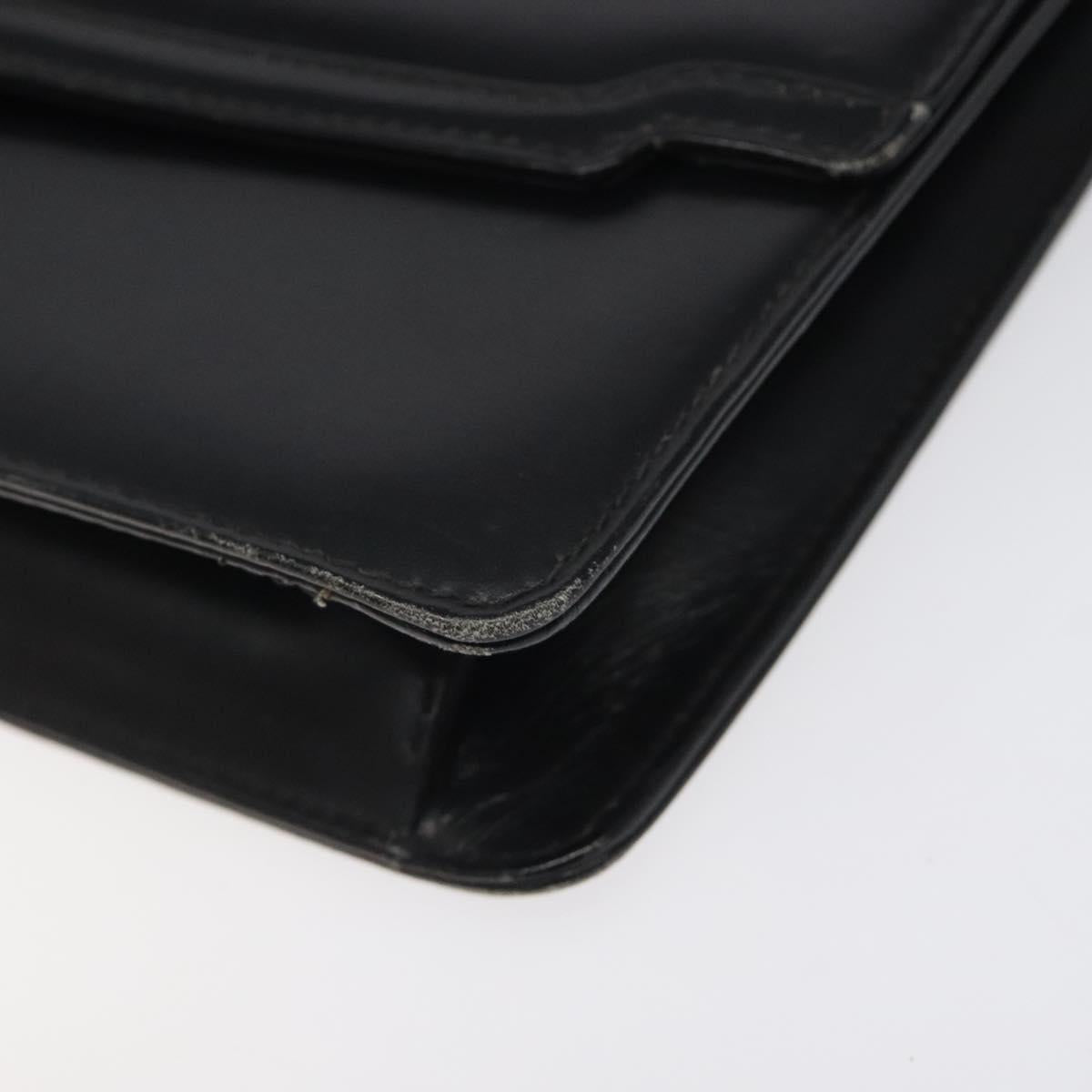 GUCCI Chain Shoulder Bag Leather Black Gold Auth 121927