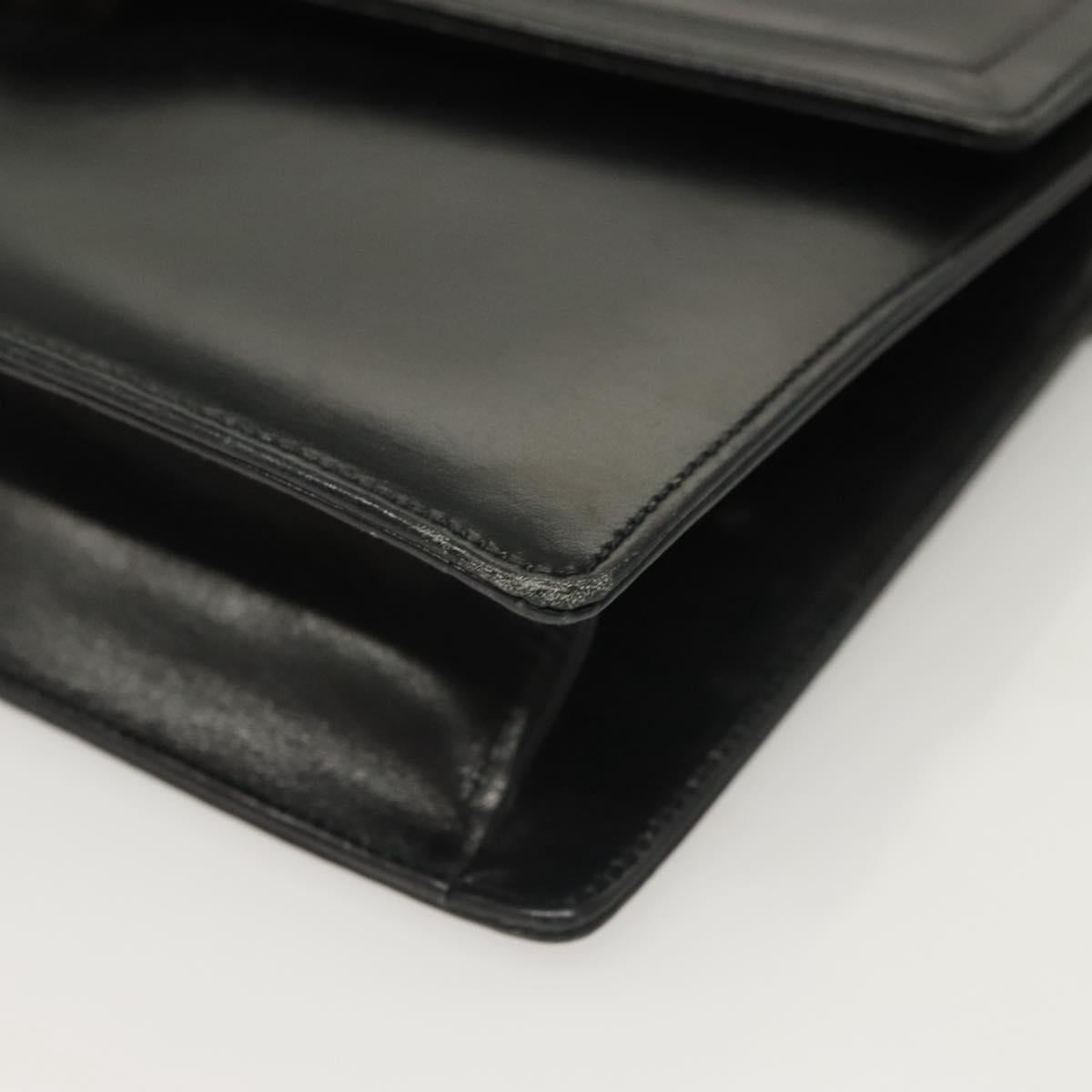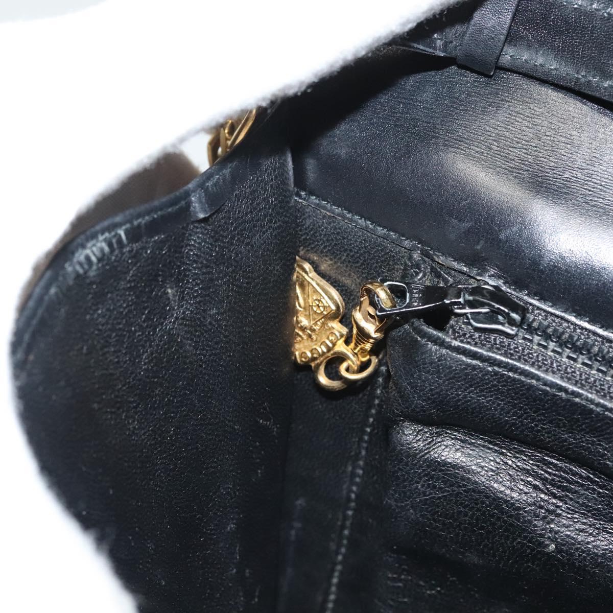 GUCCI Chain Shoulder Bag Leather Black Gold Auth ep9431
