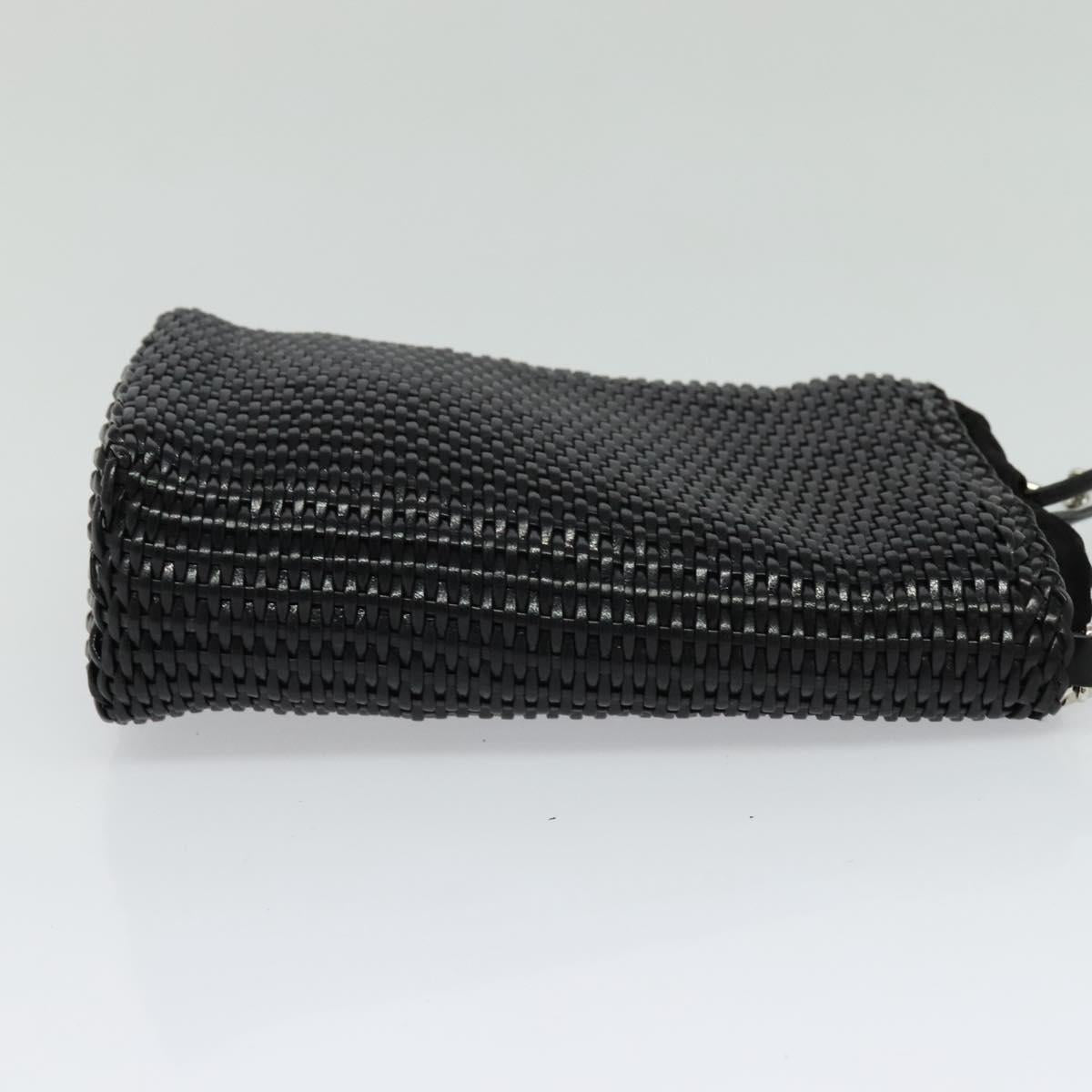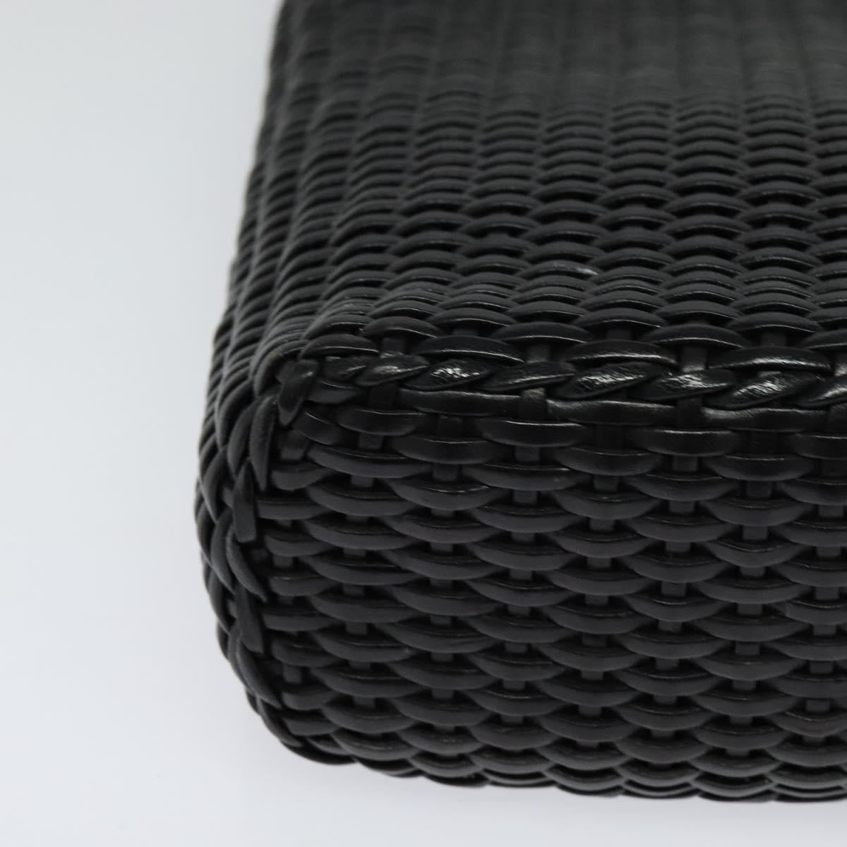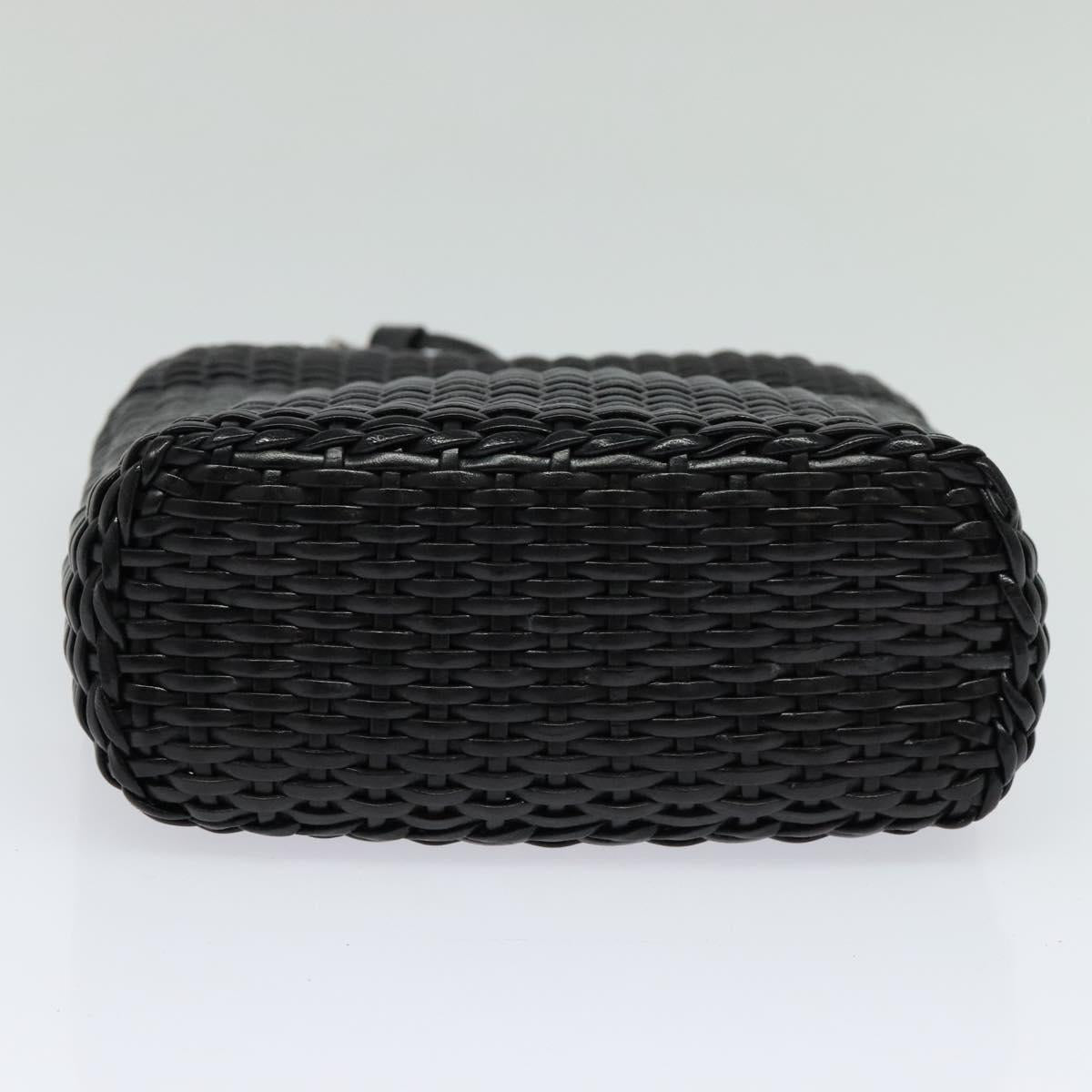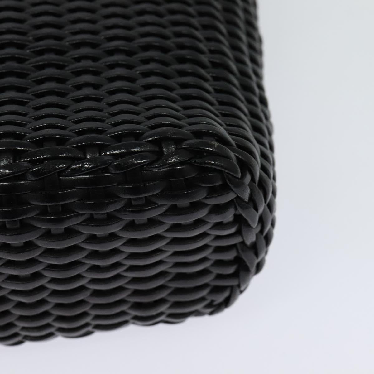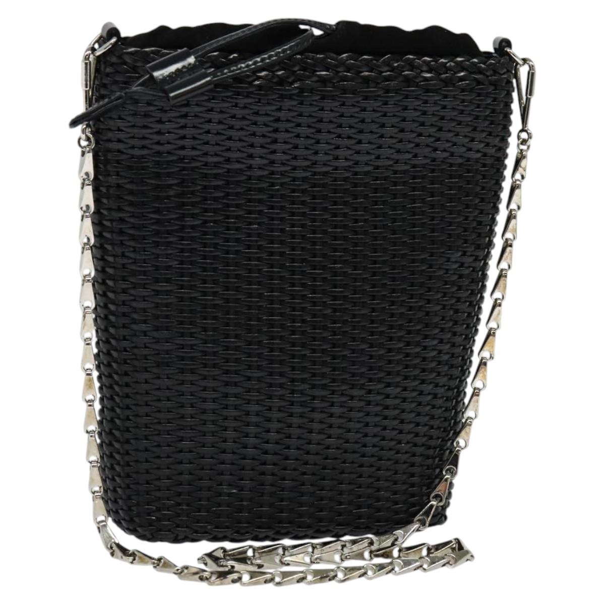 GUCCI Chain Shoulder Bag Straw Black Auth nb112