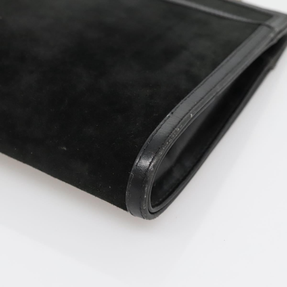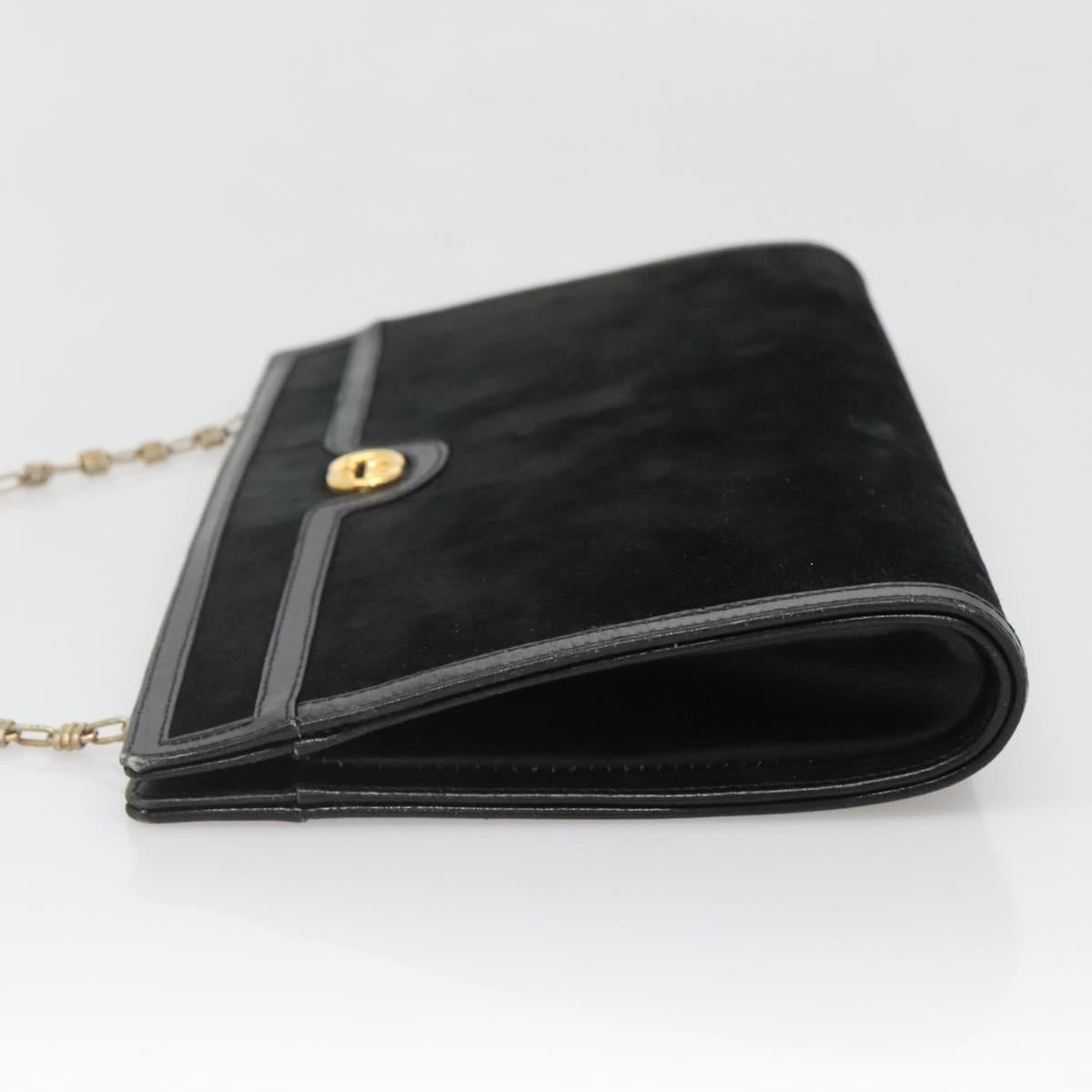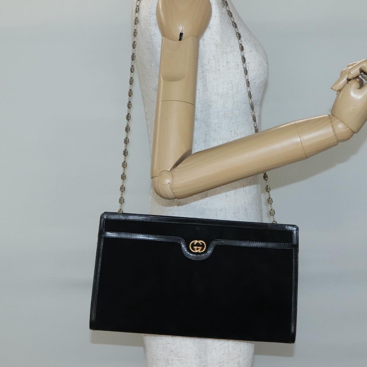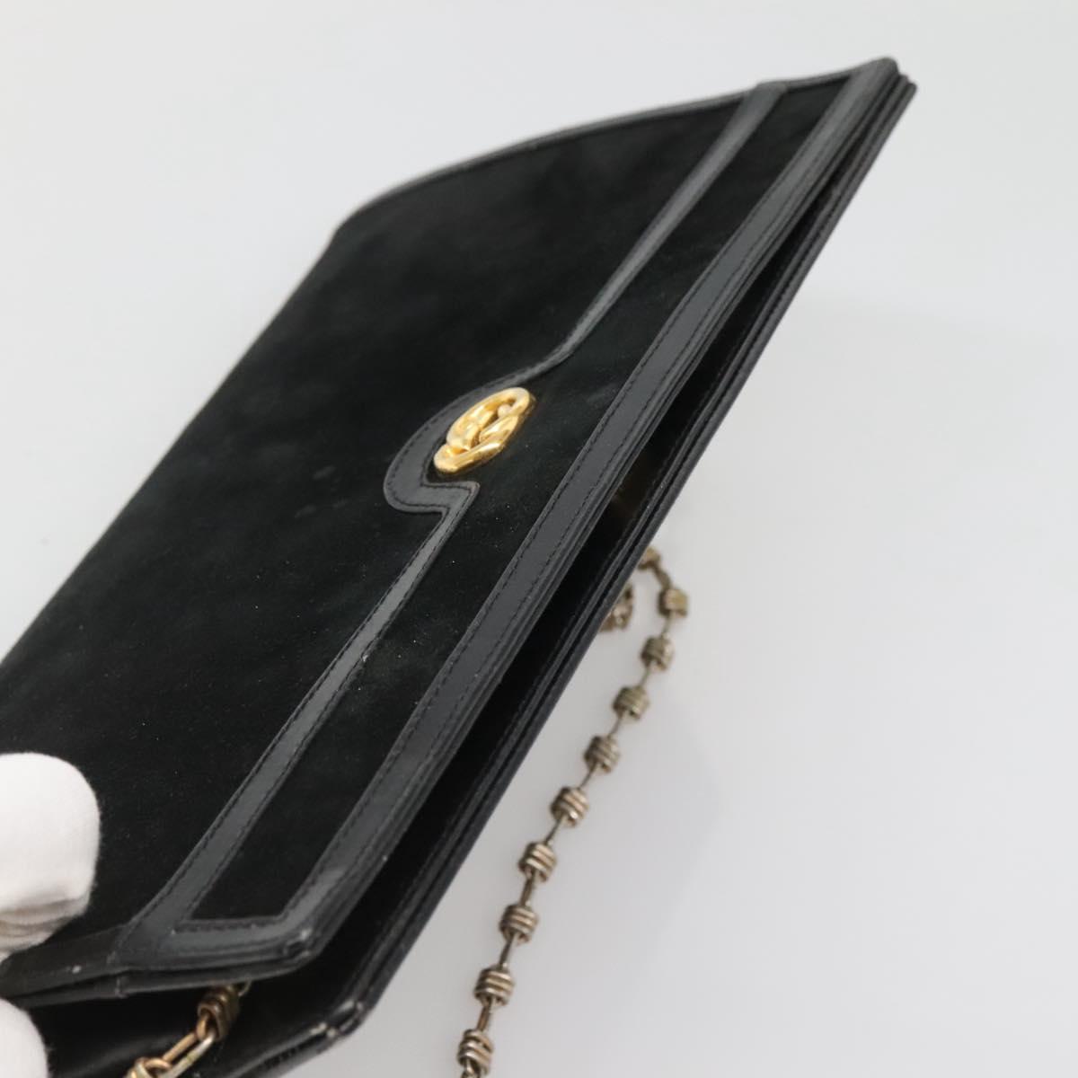 GUCCI Chain Shoulder Bag Suede Black Gold Auth 140787