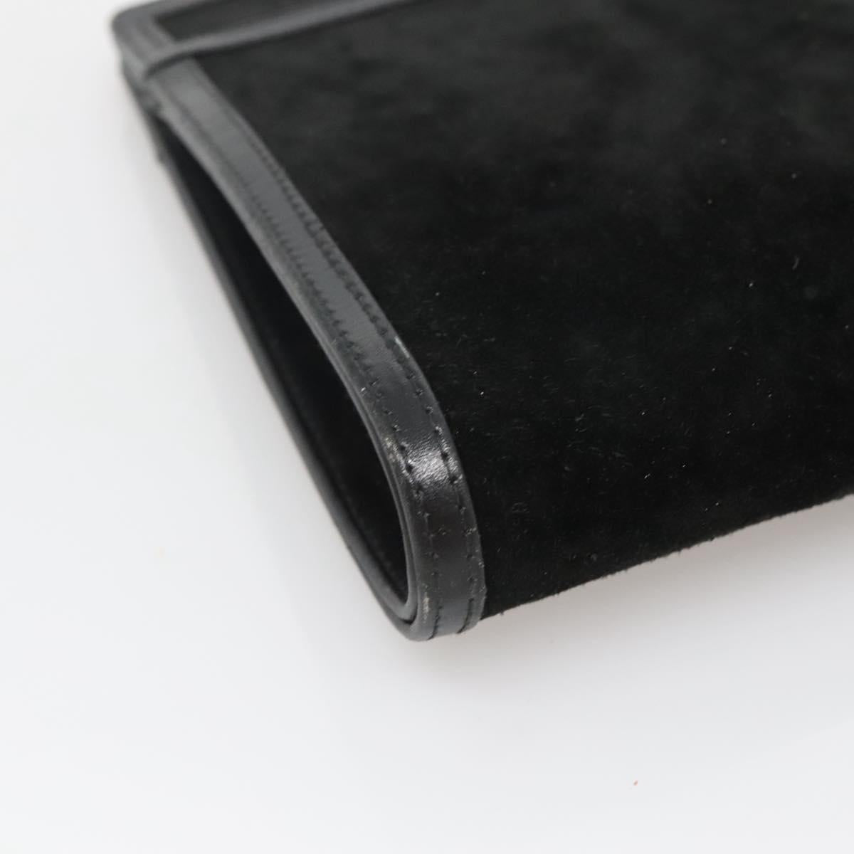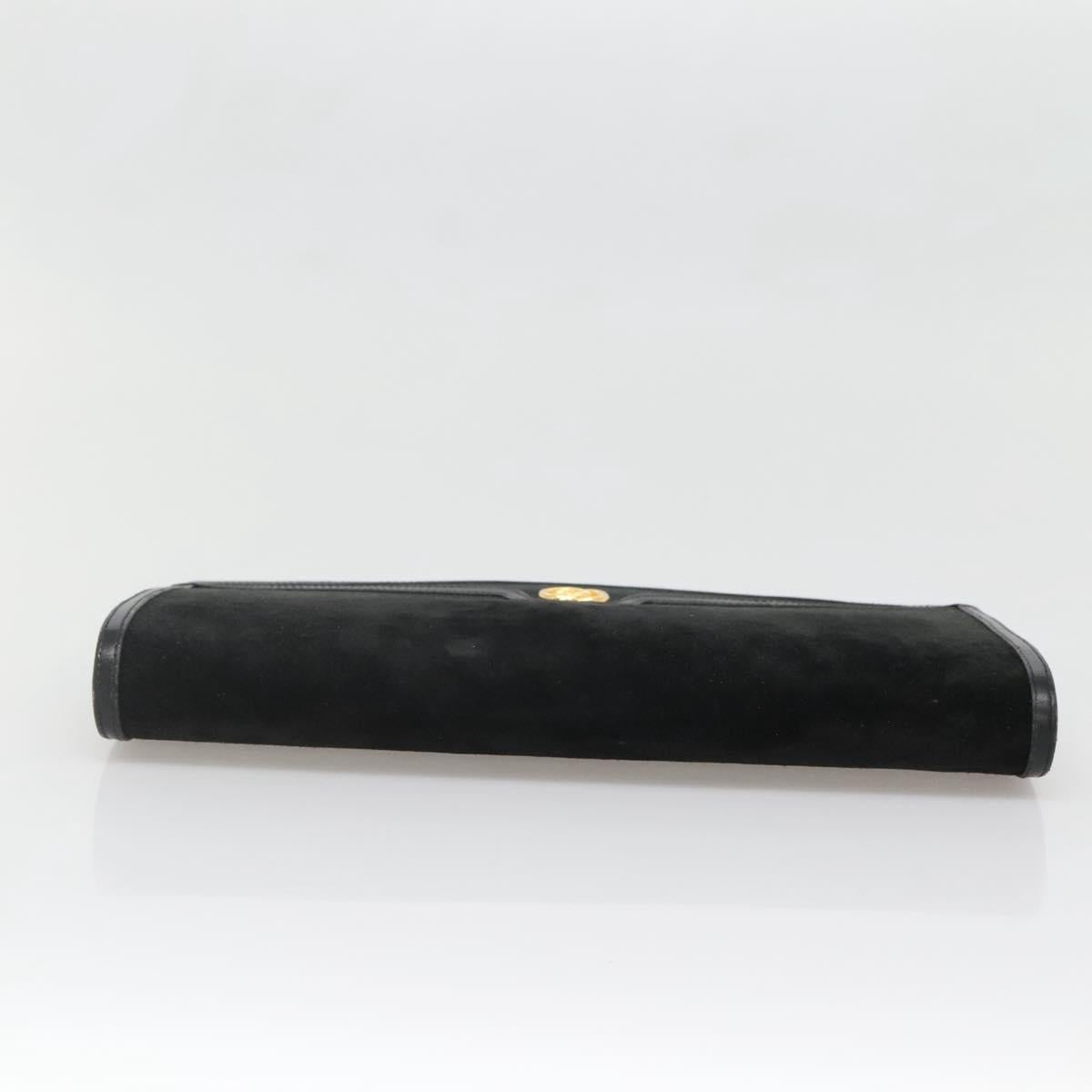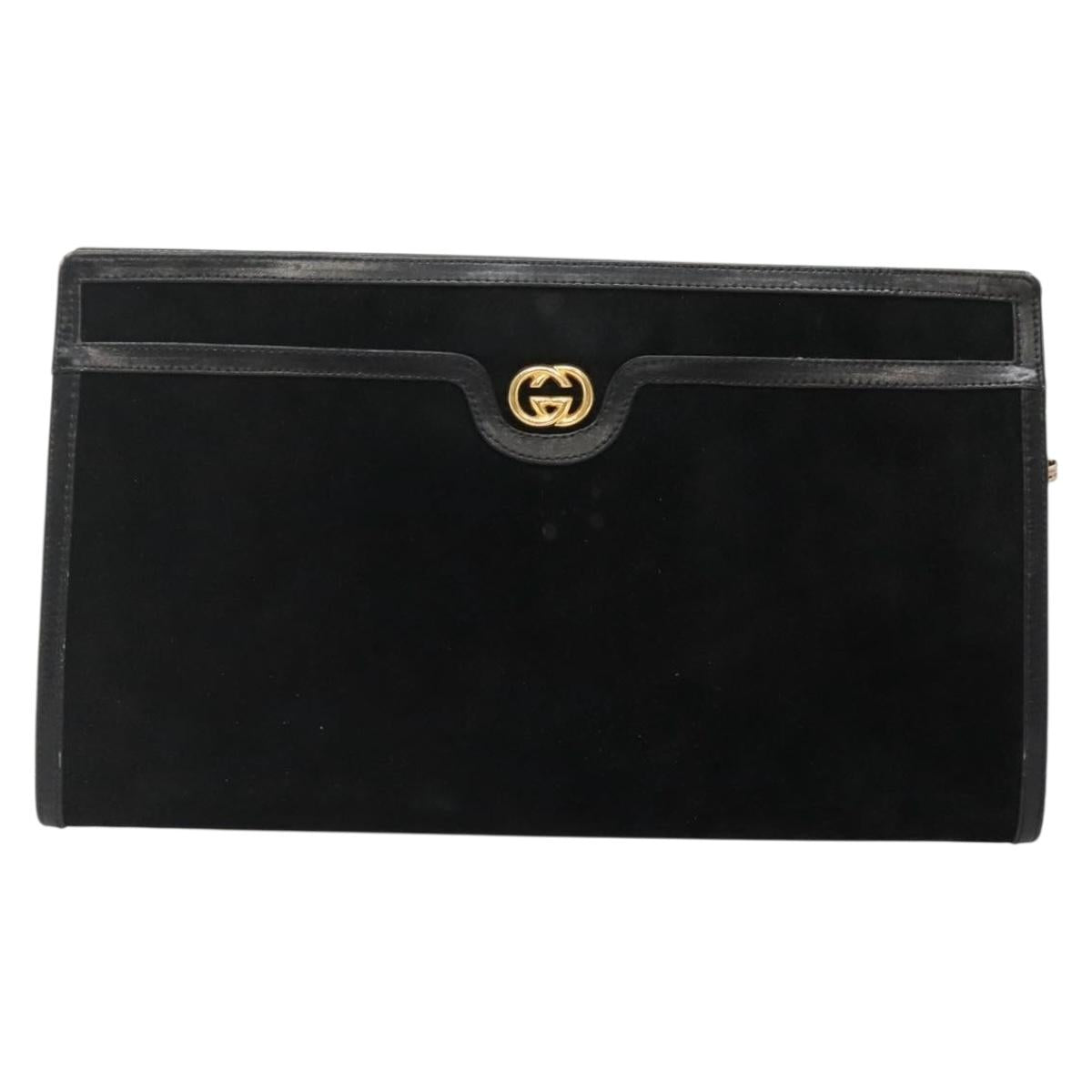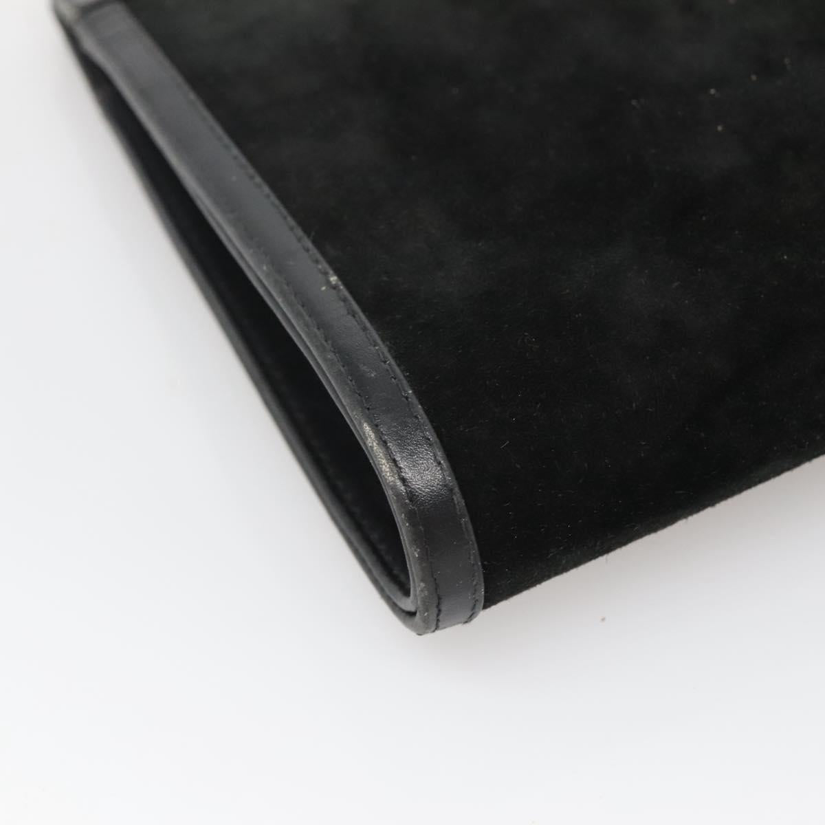 GUCCI Chain Shoulder Bag Suede Black Gold Auth 140787