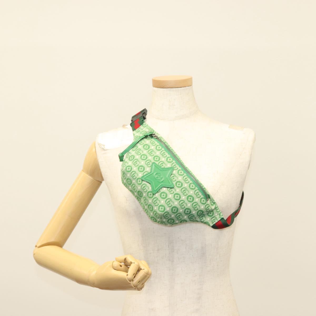 GUCCI Children's Sherry Line Bag Canvas Leather Green Silver 502095 Auth 138553