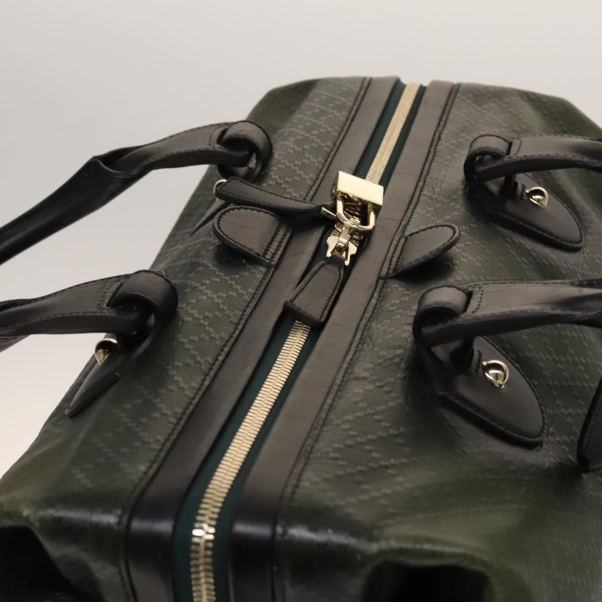 GUCCI Diamante Boston Bag PVC Khaki Black gold Auth fm4834