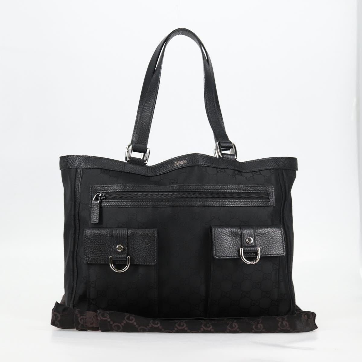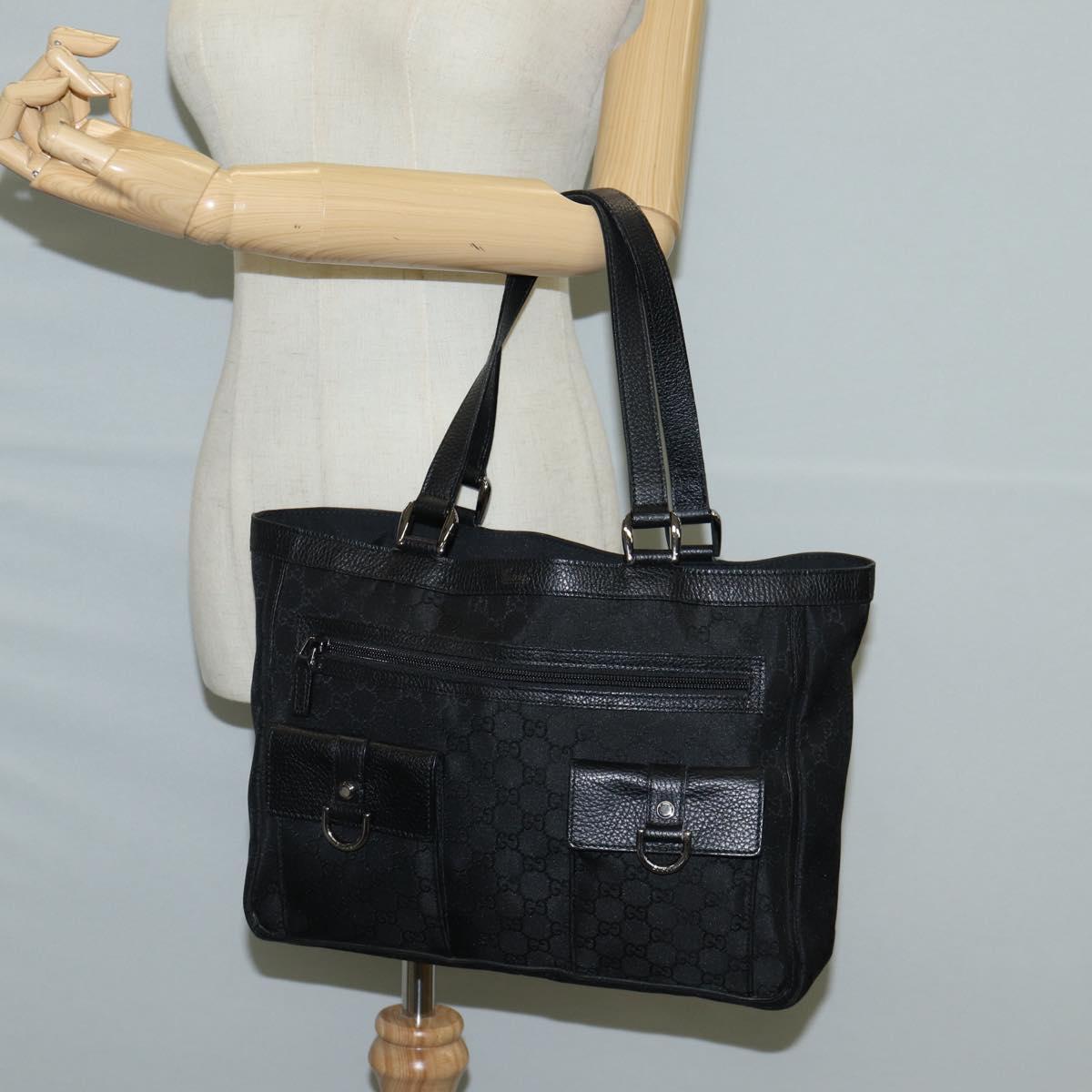 GUCCI GG Canvas Abbey Tote Bag Outlet Black Silver 268639 Auth am8602V