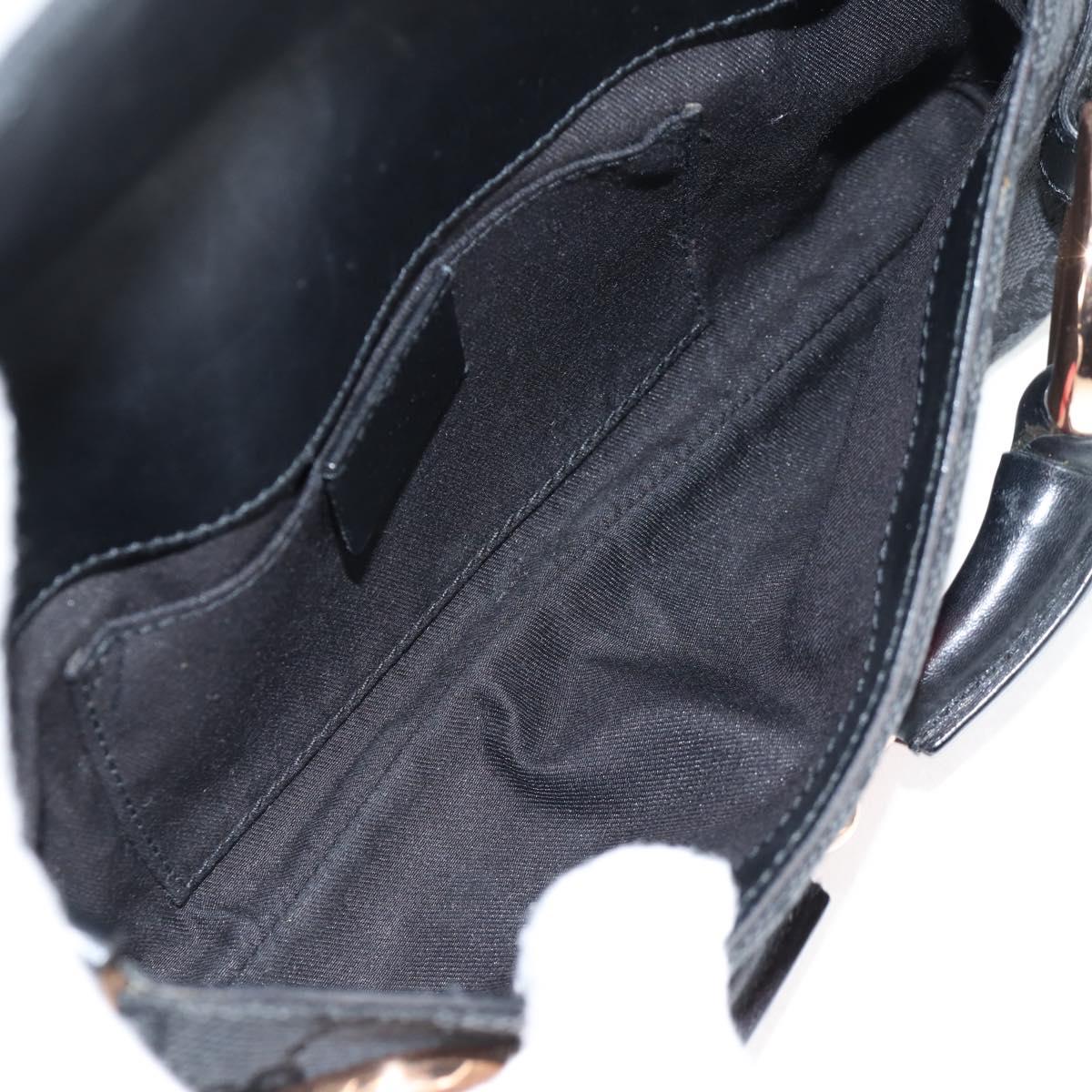 GUCCI GG Canvas Bamboo Chain Horsebit Hand Bag Black Gold 129497 Auth yk18998V
