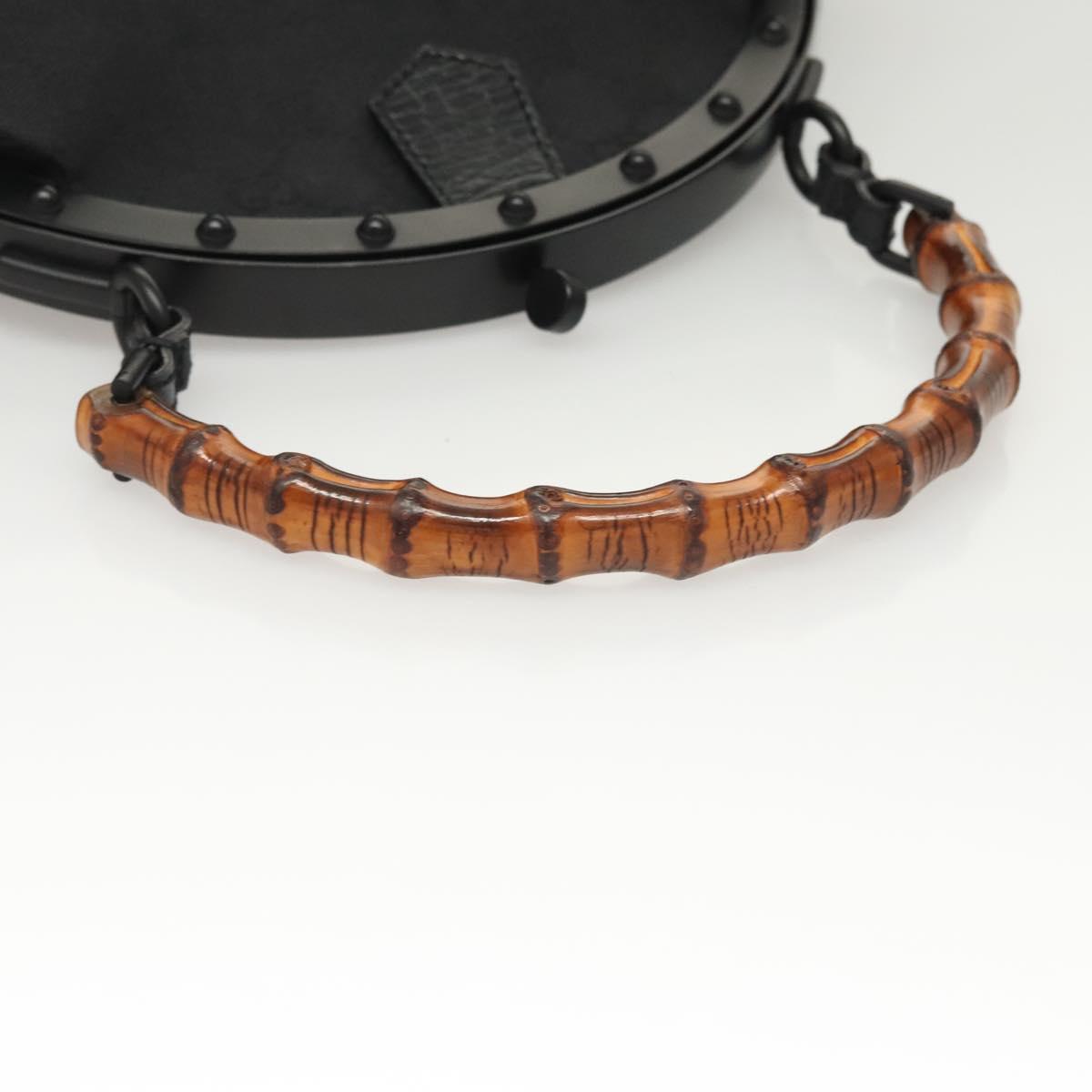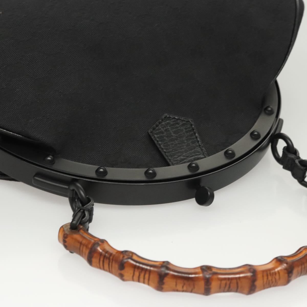 GUCCI GG Canvas Bamboo Push Lock Hand Bag Black Auth 119629A
