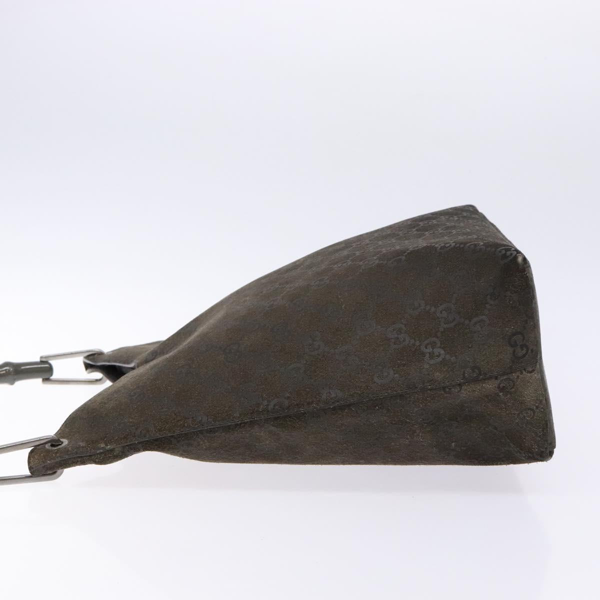 GUCCI GG Canvas Bamboo Shoulder Bag Suede Gray Silver 001 1705 3006 Auth bs28652
