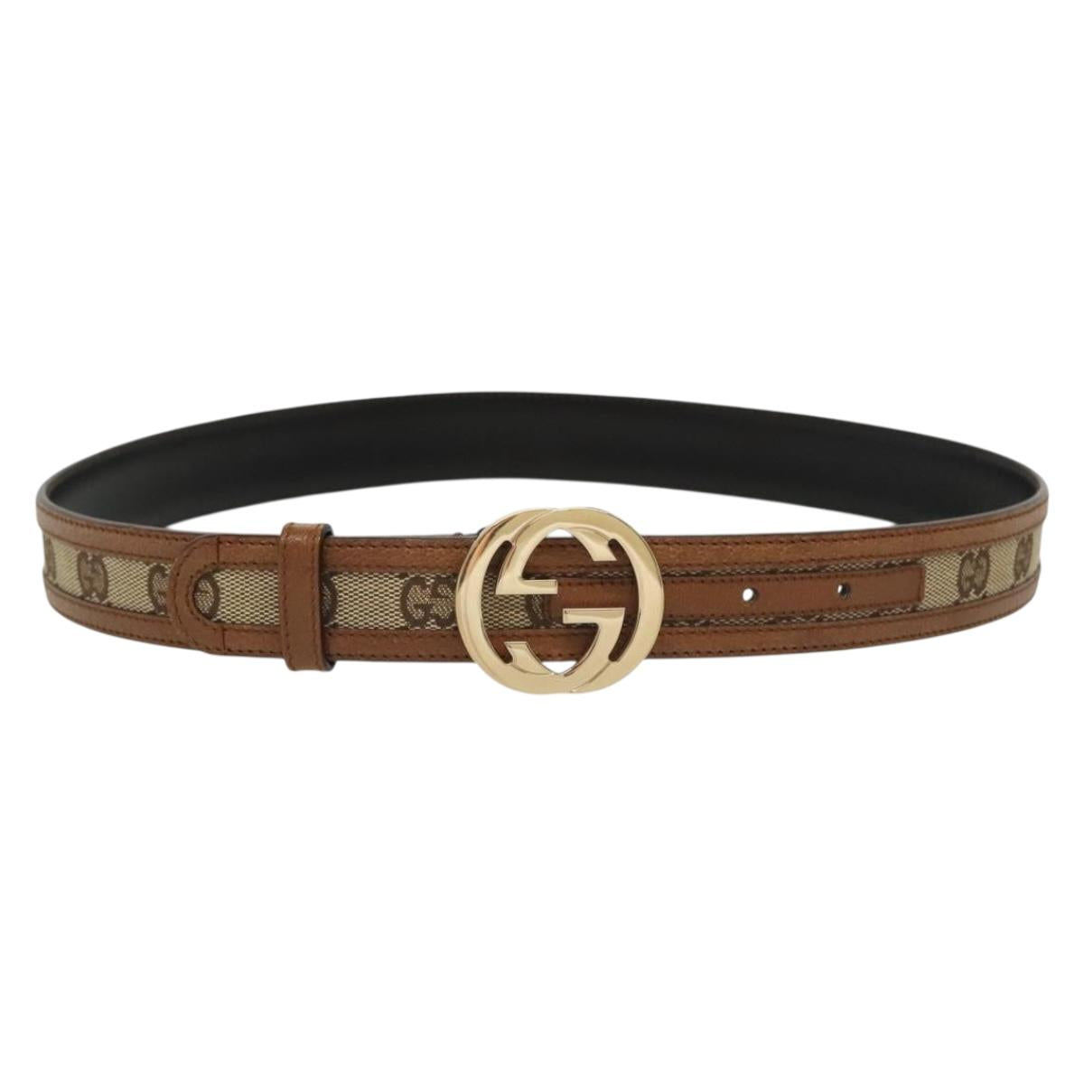 GUCCI GG Canvas Belt Leather 35.4"" Beige Gold 114874 Auth 137789