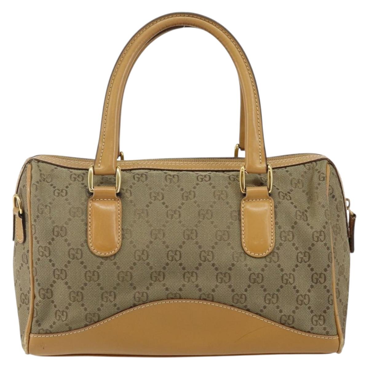 GUCCI GG Canvas Boston Bag Beige Gold Auth bs29152