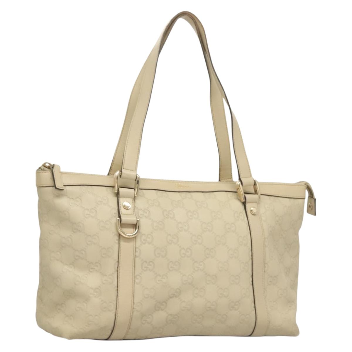 GUCCI GG Canvas Guccissima Abbey Tote Bag Leather White Gold 141470 Auth 133333