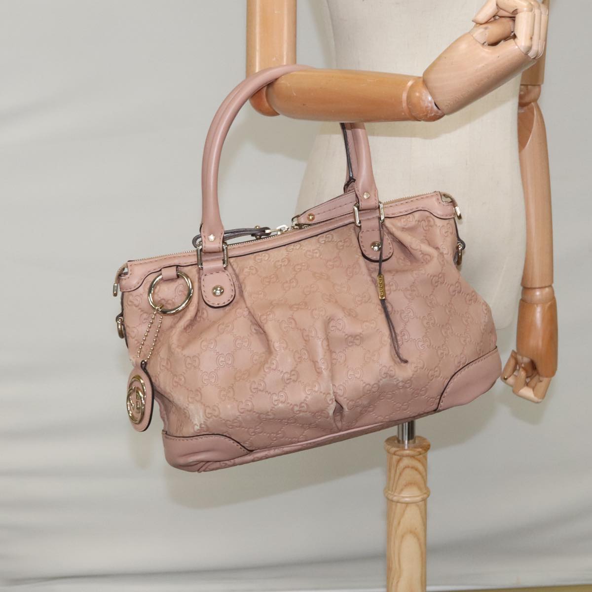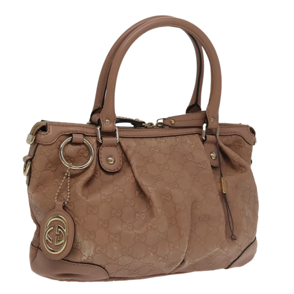 GUCCI GG Canvas Guccissima Hand Bag Leather Pink 247902 Auth 102270