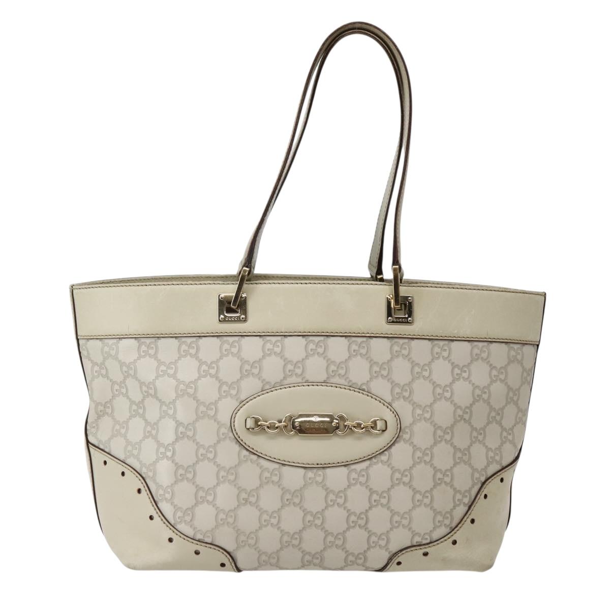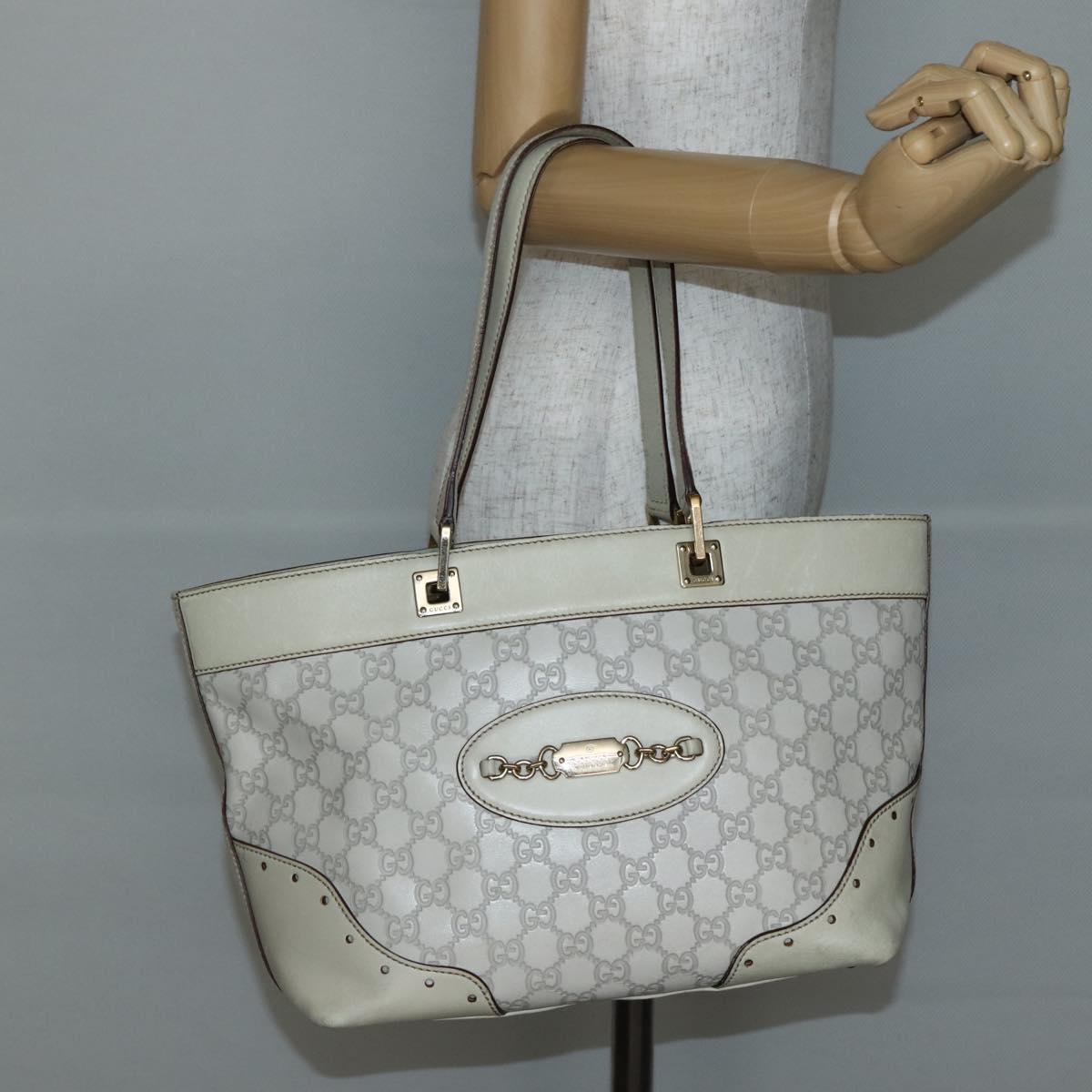 GUCCI GG Canvas Guccissima Tote Bag Leather White Gold 145993 Auth 144130