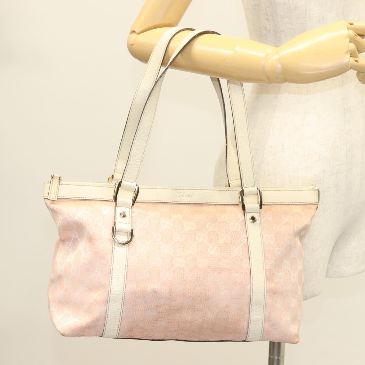 GUCCI GG Canvas Hand Bag Gold Pink 141470 Auth 127877