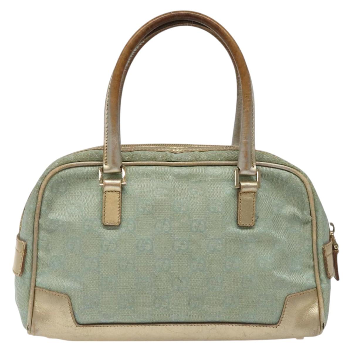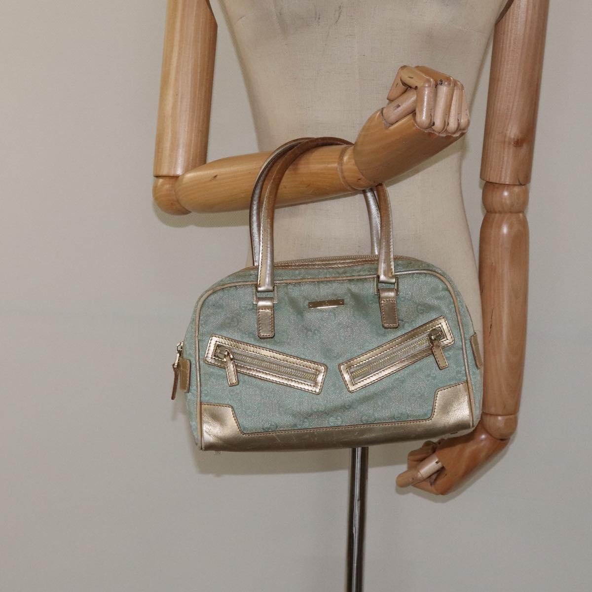 GUCCI GG Canvas Hand Bag Light Blue Gold 000 0852 Auth 116100