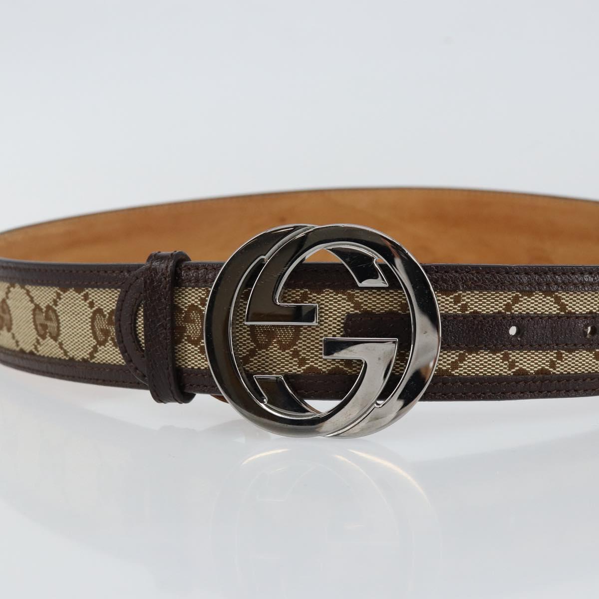GUCCI GG Canvas Interlocking Belt 37.4"" Beige Silver 114876 Auth 146423
