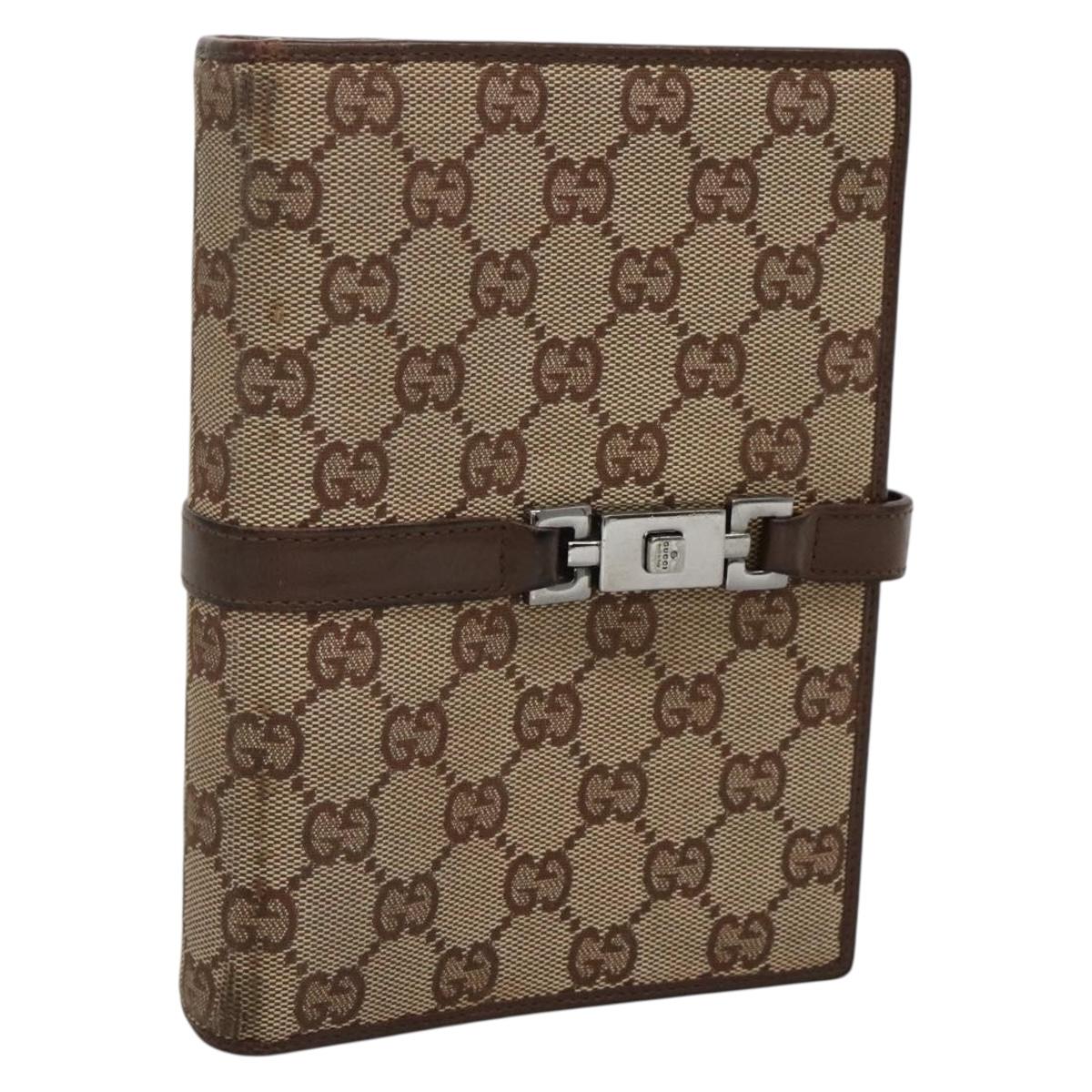 GUCCI GG Canvas Jackie Day Planner Cover Beige Silver 29961 Auth 138492