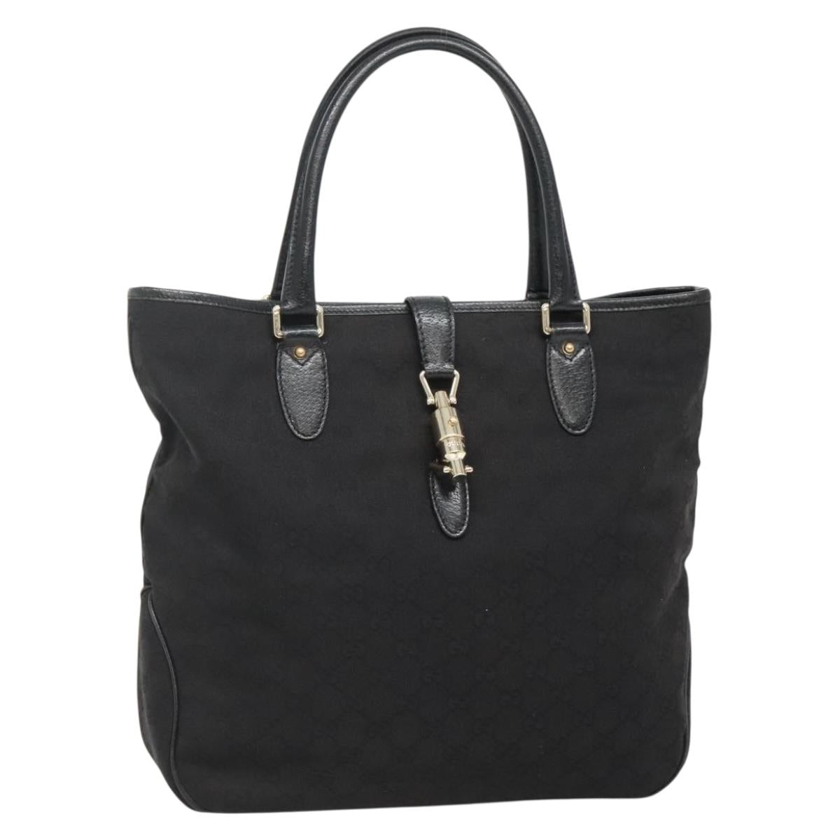 GUCCI GG Canvas Jackie Hand Bag Black Gold 145818 Auth 134047