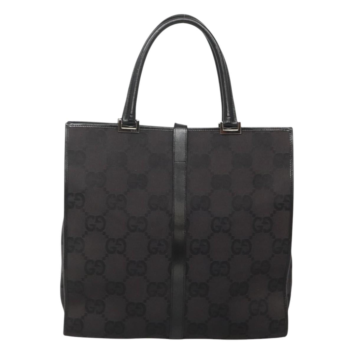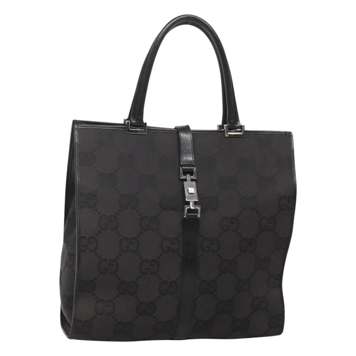 GUCCI GG Canvas Jackie Hand Bag Black Silver 002 1064 3444 Auth 119758