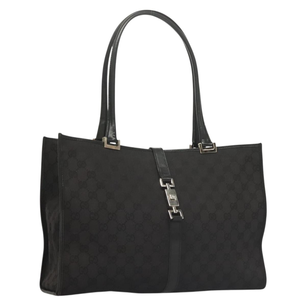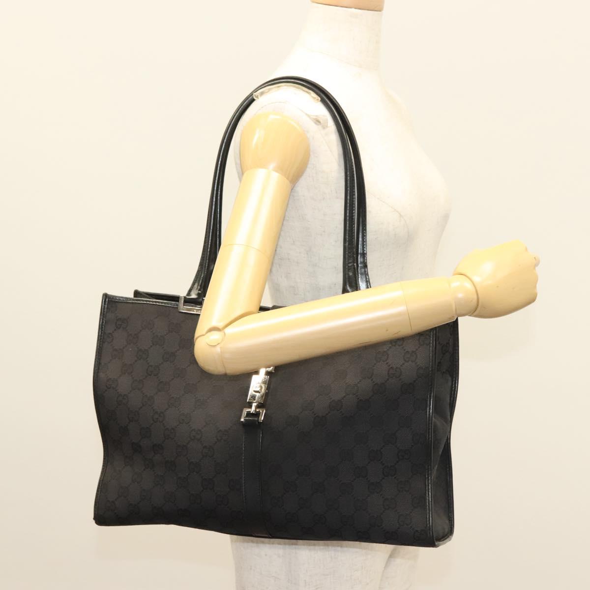 GUCCI GG Canvas Jackie Tote Bag Black Silver 002 1074 2123 Auth sw1339