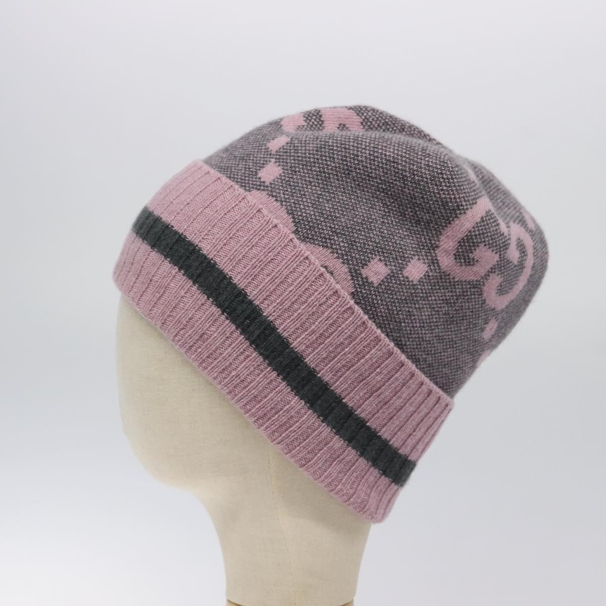 GUCCI GG Canvas Knitted Fabrics Cap Cashmere M Pink 676827 Auth am8353