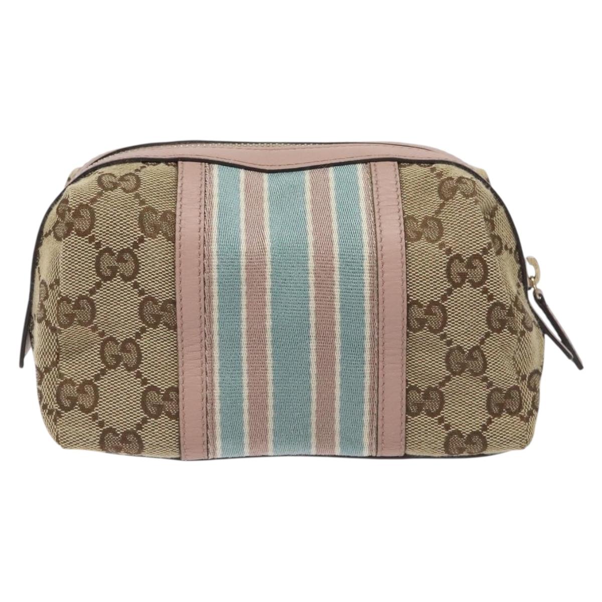 GUCCI GG Canvas Pouch Beige Gold 256636 Auth yk18724V