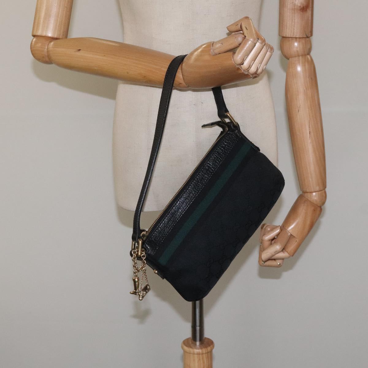 GUCCI GG Canvas Sherry Line Accessory Pouch Black Khaki 145970 Auth KD125V