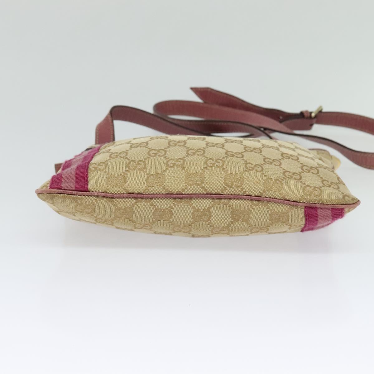 GUCCI GG Canvas Sherry Line Shoulder Bag Beige Gold 144388 Auth ti3136