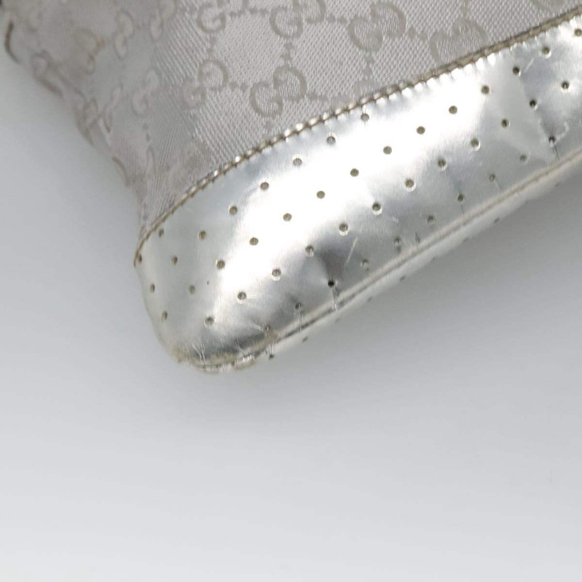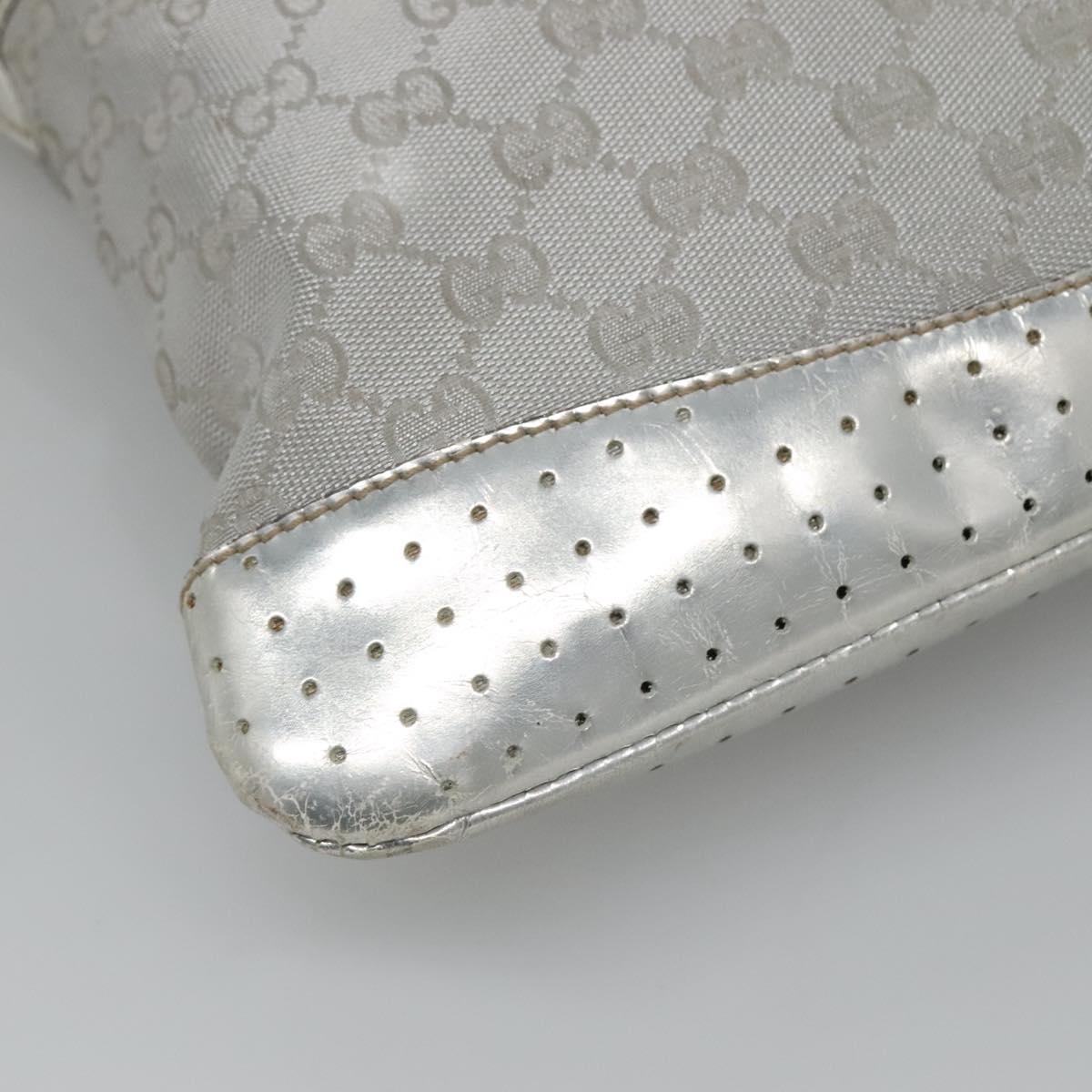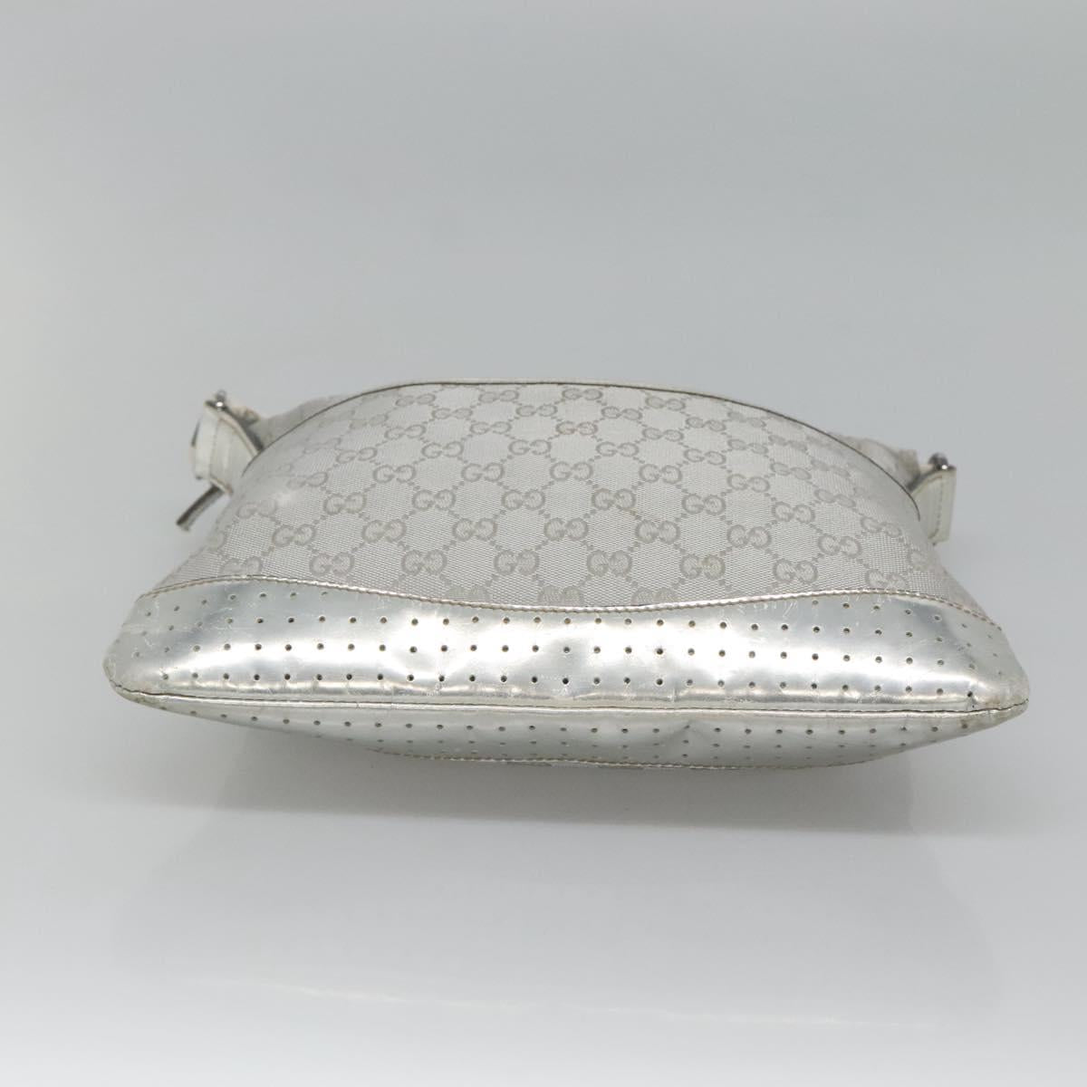 GUCCI GG Canvas Sherry Line Shoulder Bag Gray Silver blue 145857 Auth bs23771