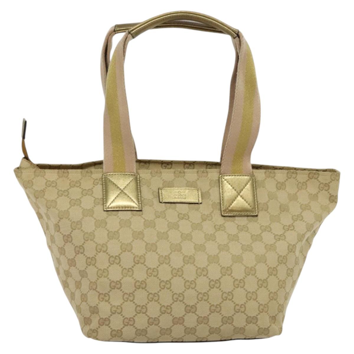GUCCI GG Canvas Sherry Line Tote Bag Beige Pink gold 131230 Auth nb048
