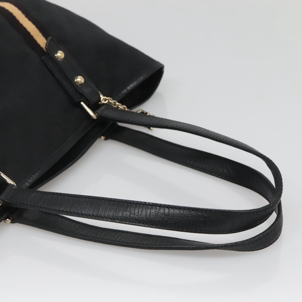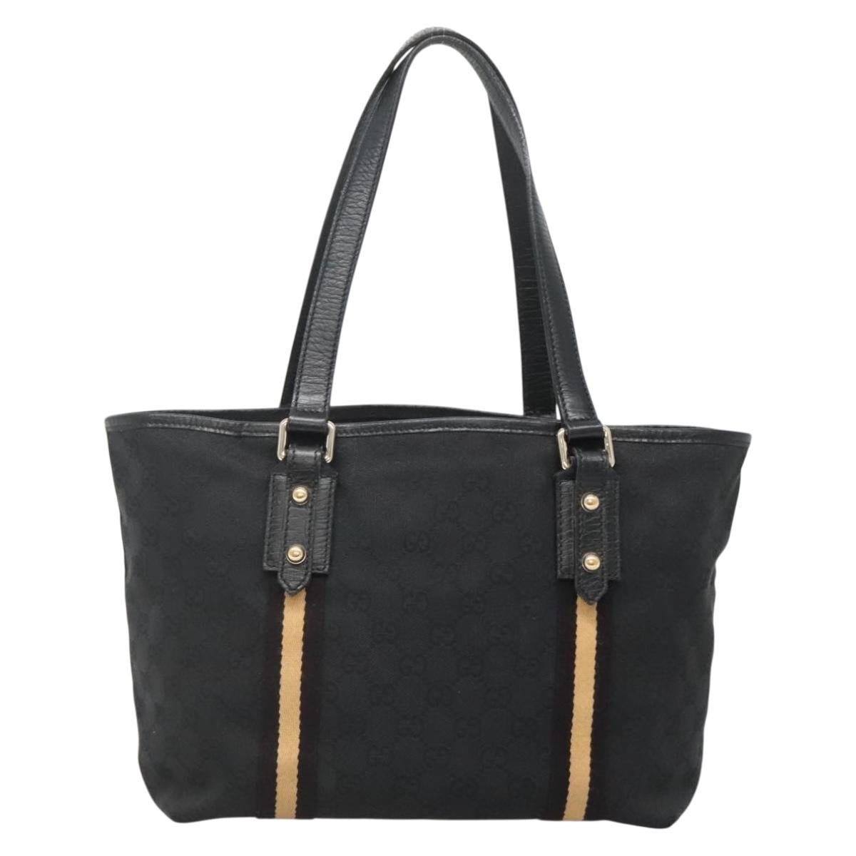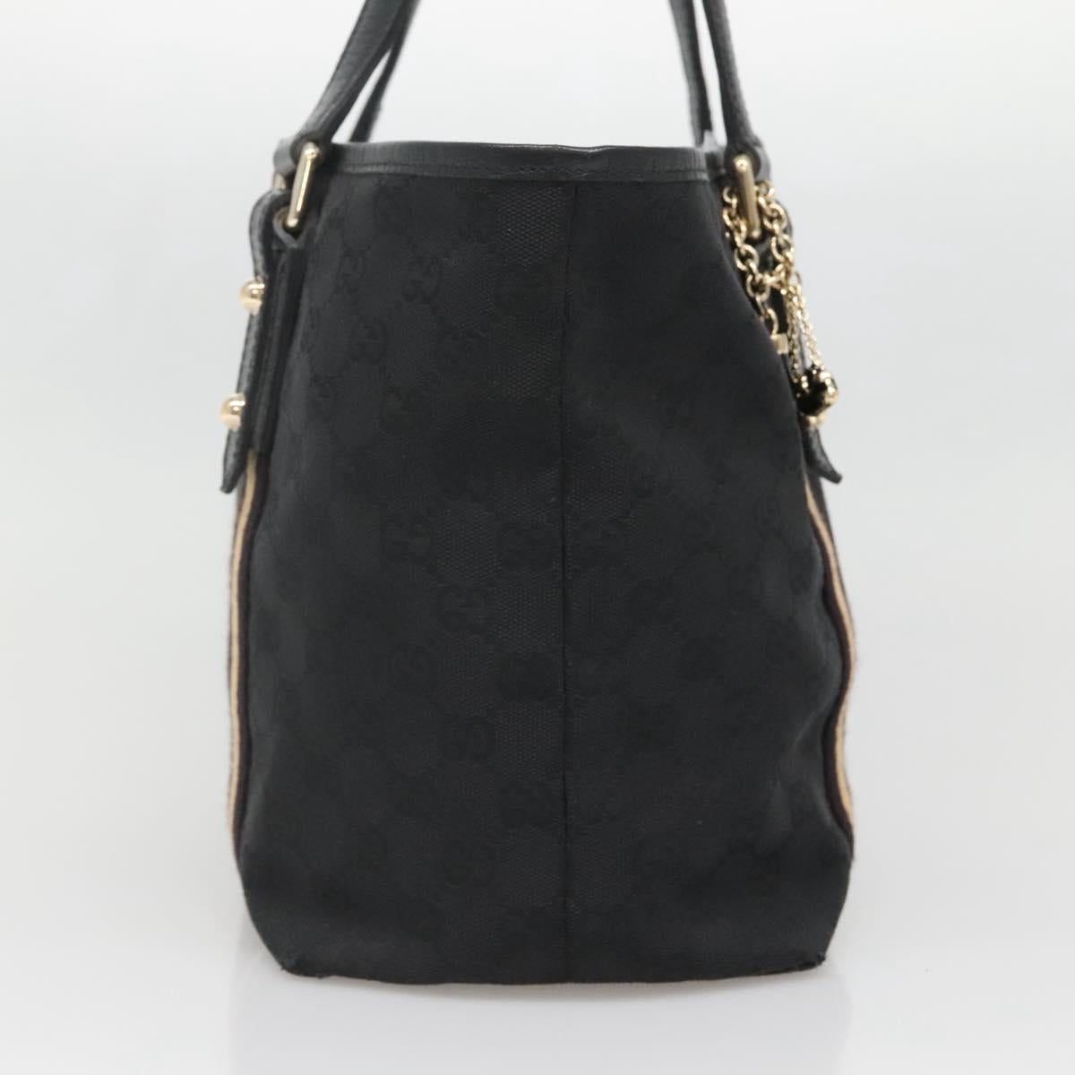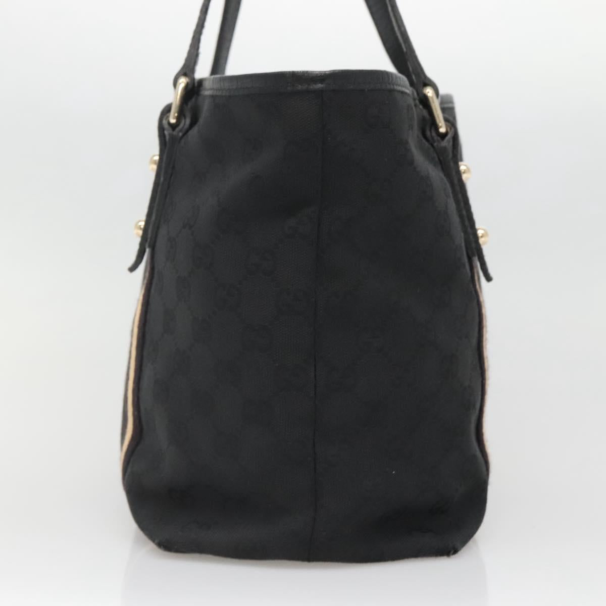GUCCI GG Canvas Sherry Line Tote Bag Black Gold 137396 Auth gh751