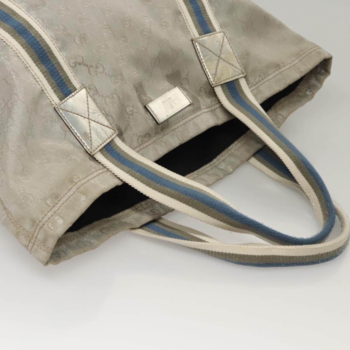 GUCCI GG Canvas Sherry Line Tote Bag Silver Blue 189669 Auth ki5579