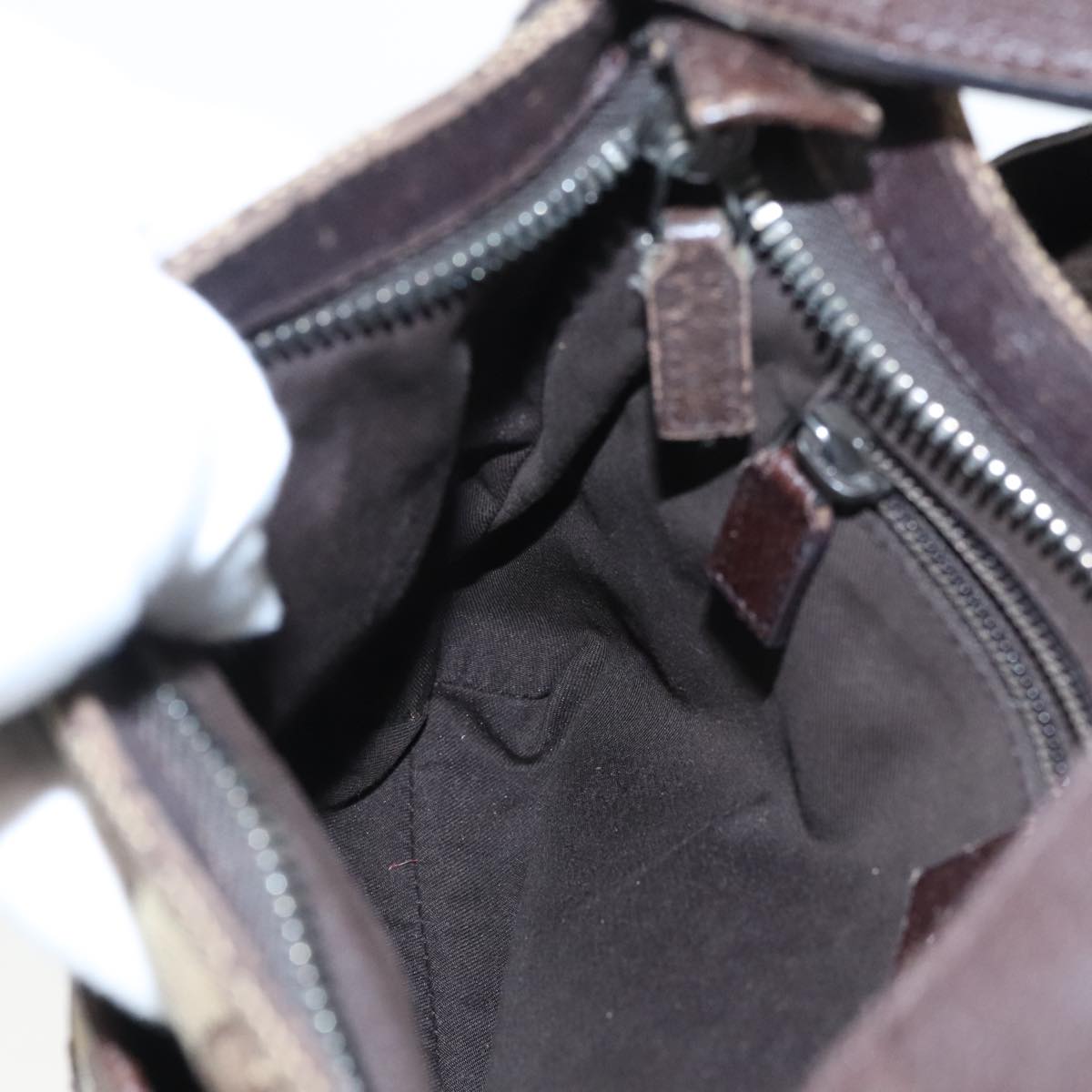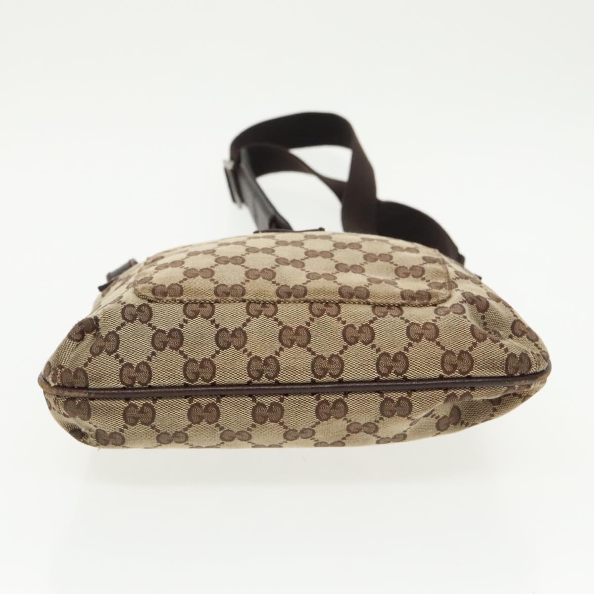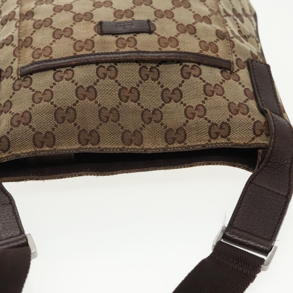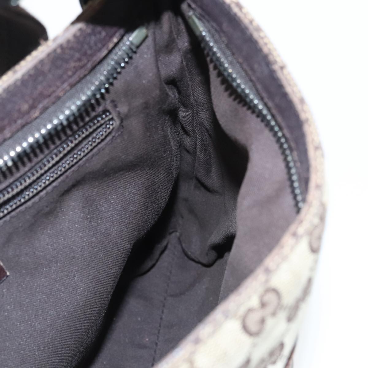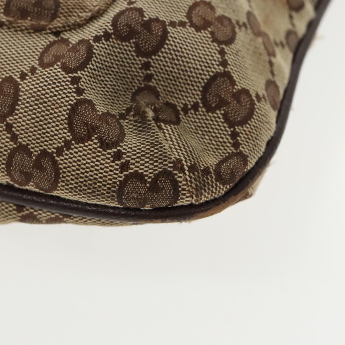 GUCCI GG Canvas Shoulder Bag Beige Dark Brown Silver 122793 Auth ti2385