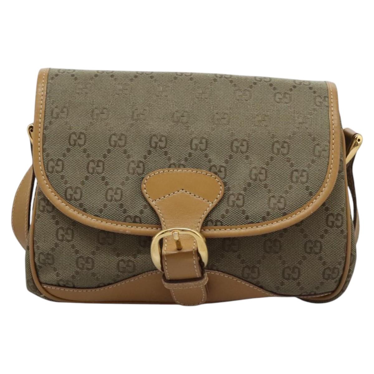 GUCCI GG Canvas Shoulder Bag Beige Gold Auth ac3606