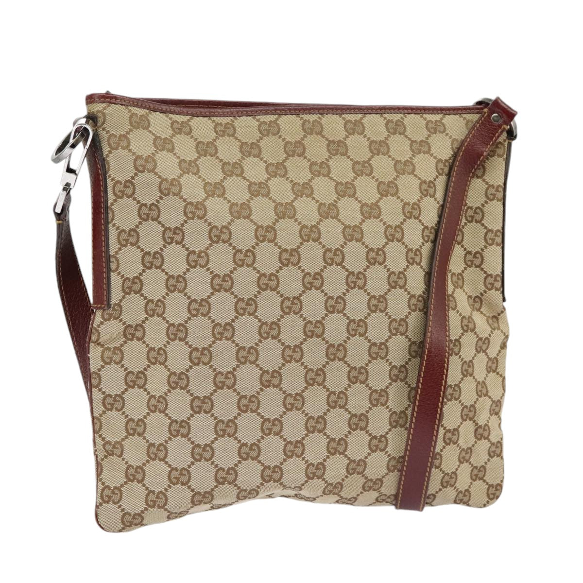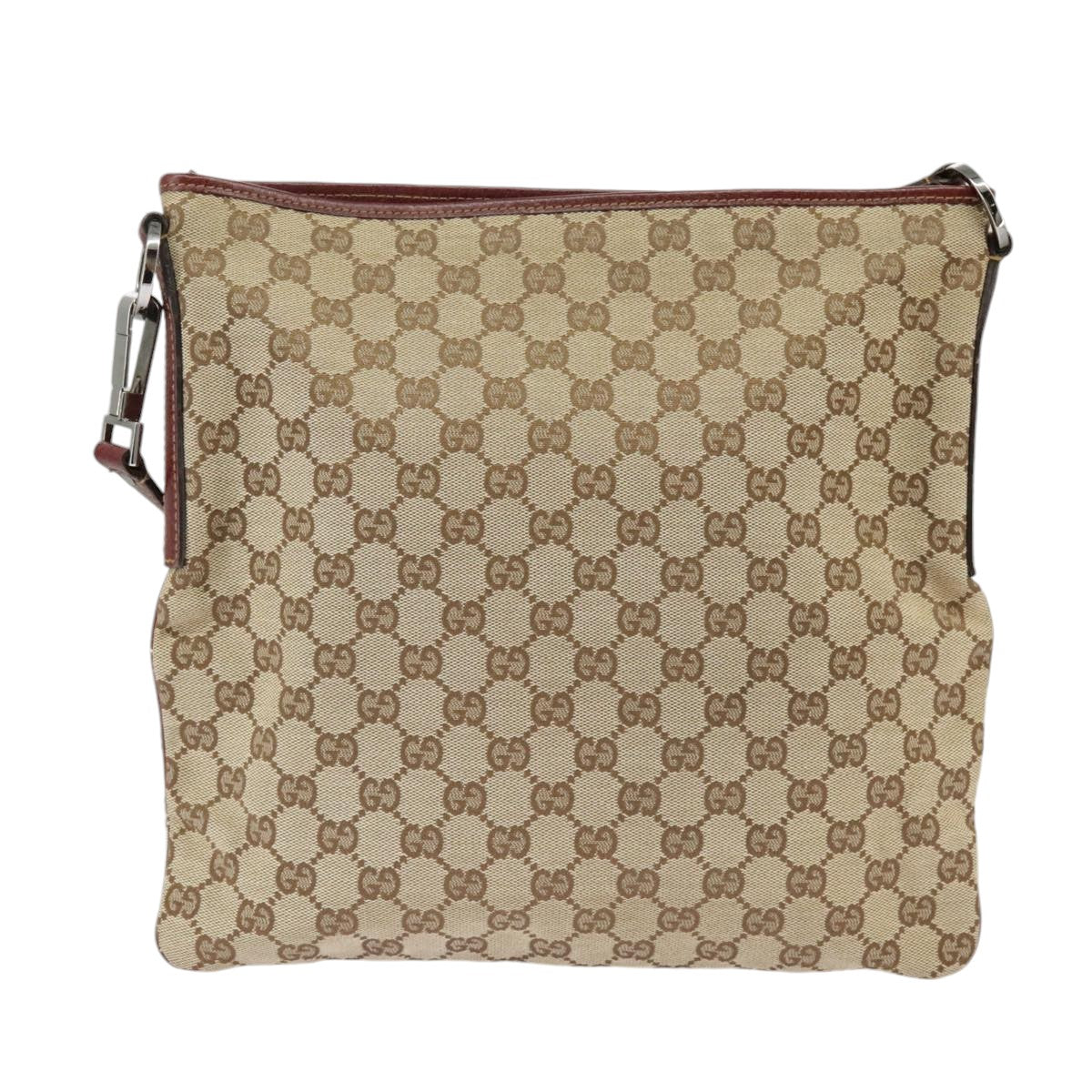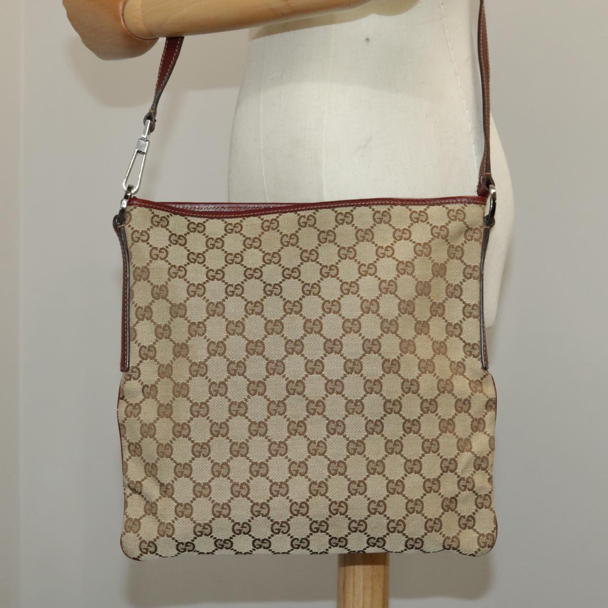 GUCCI GG Canvas Shoulder Bag Beige Silver 113013 Auth 99358