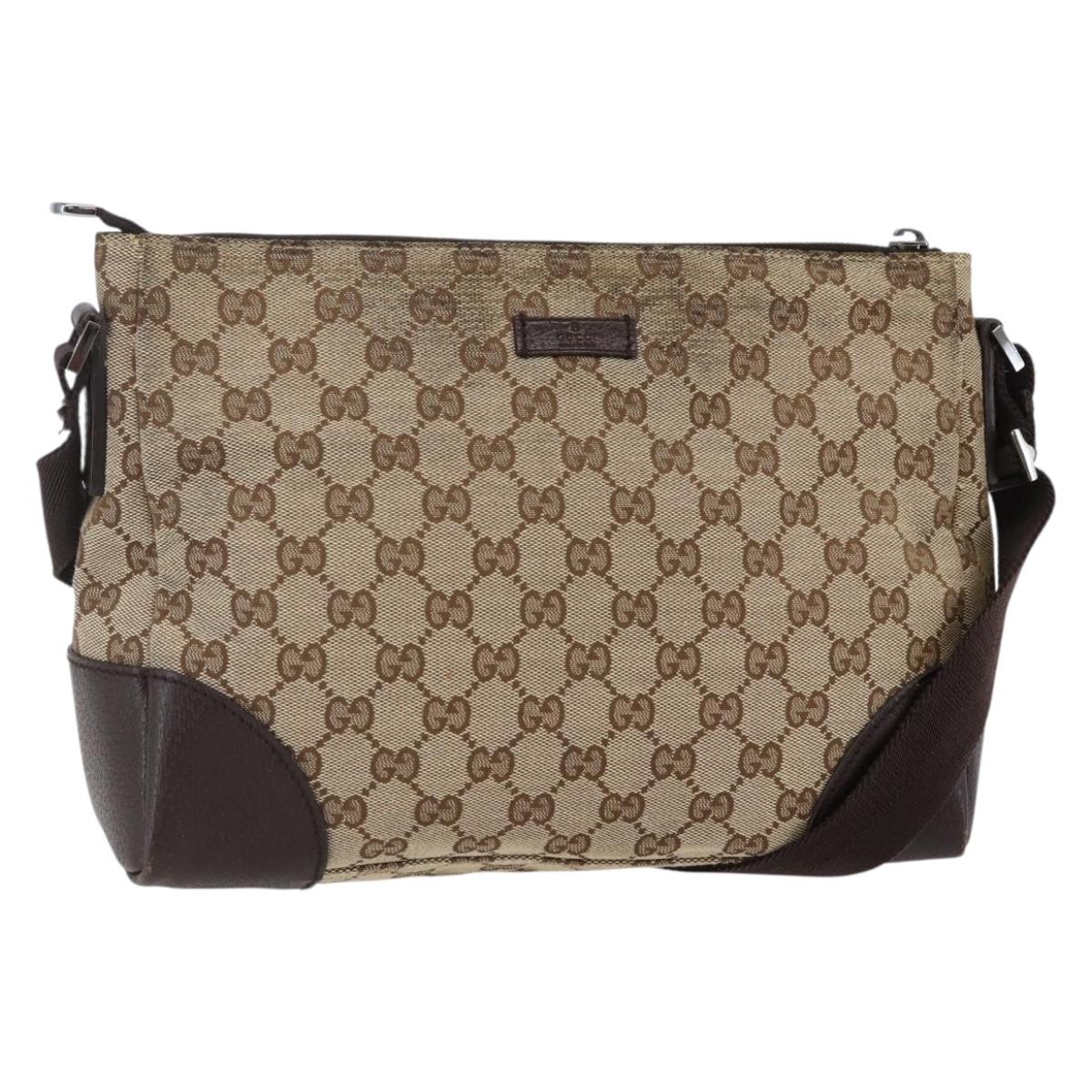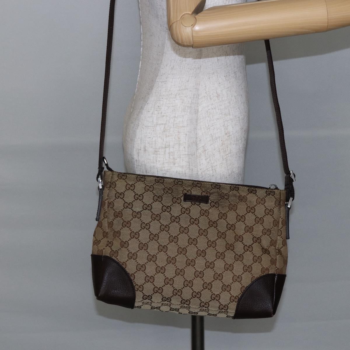 GUCCI GG Canvas Shoulder Bag Beige Silver 114273 Auth 145126