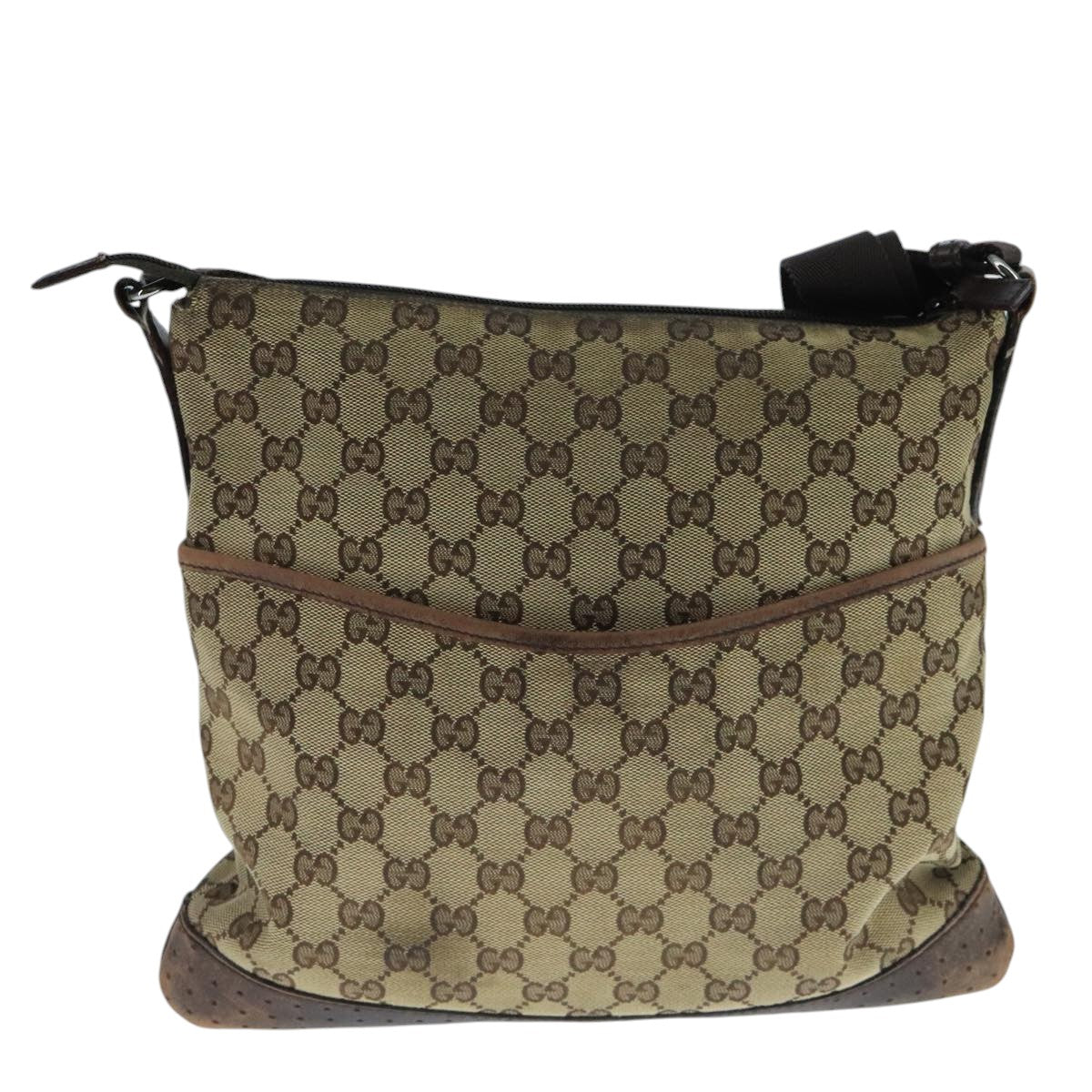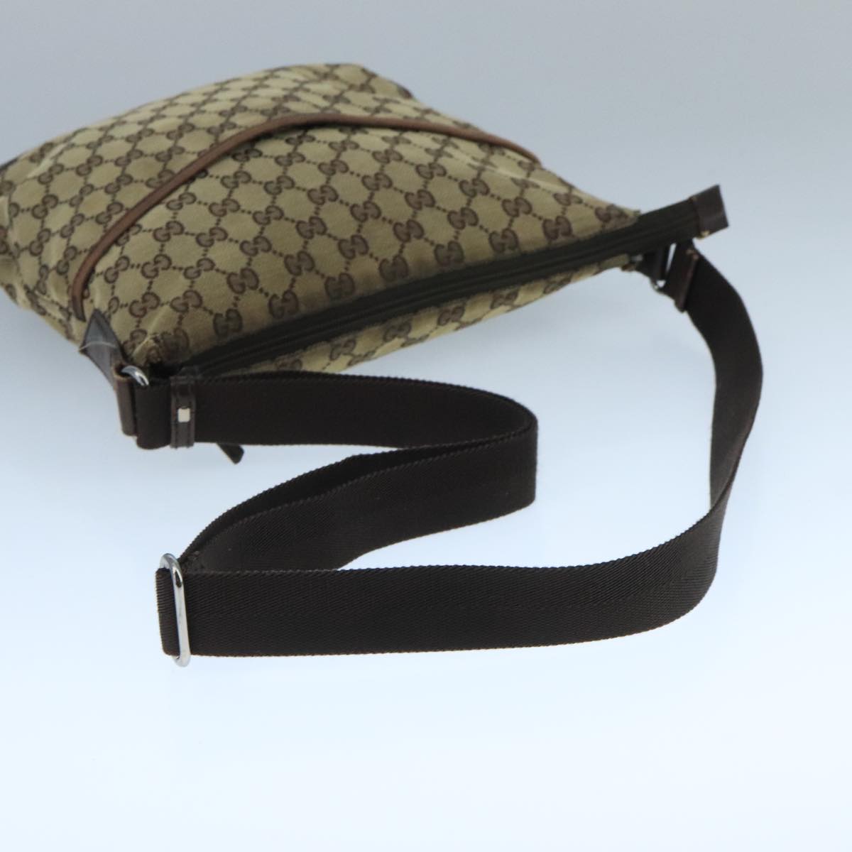 GUCCI GG Canvas Shoulder Bag Beige Silver 145857 Auth bs21051