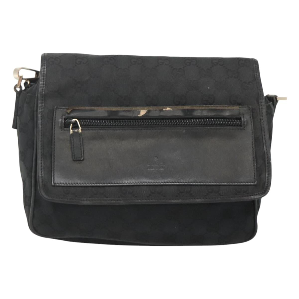 GUCCI GG Canvas Shoulder Bag Black Gold 019 0375 Auth SW809